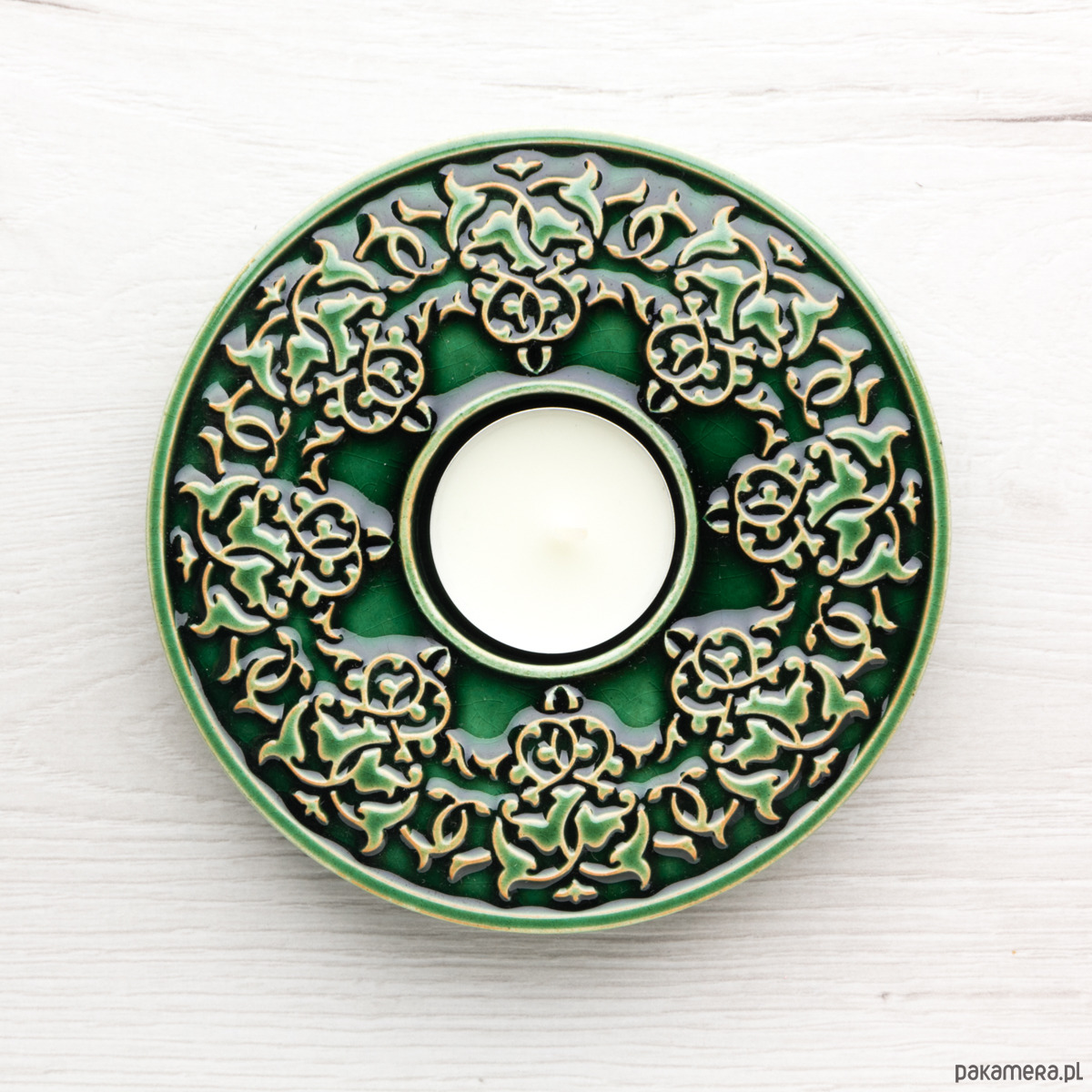 średnica miejsca na małą świece lub tealight 4,3cm.