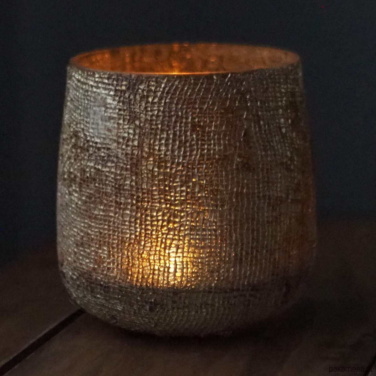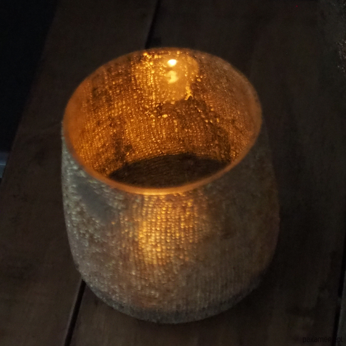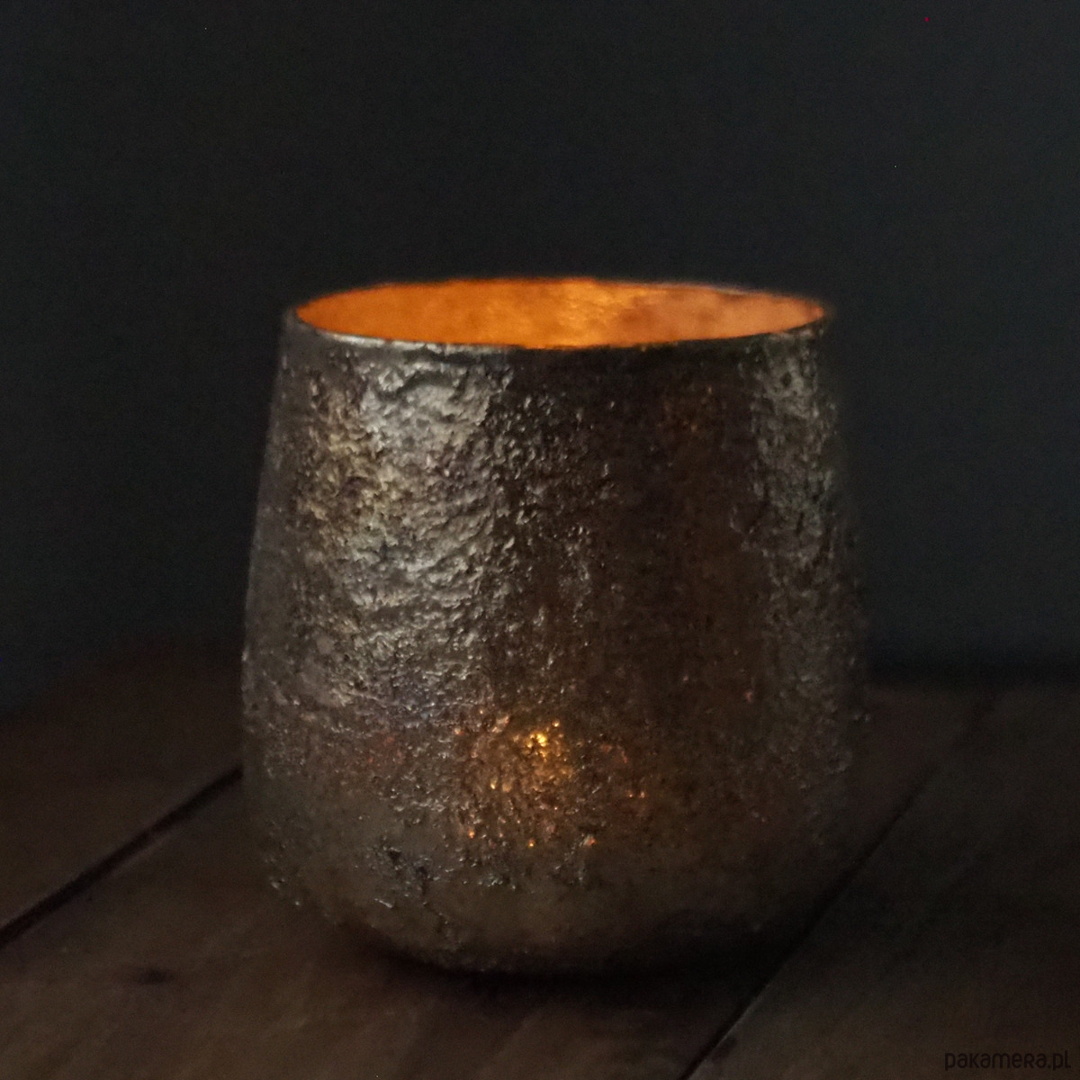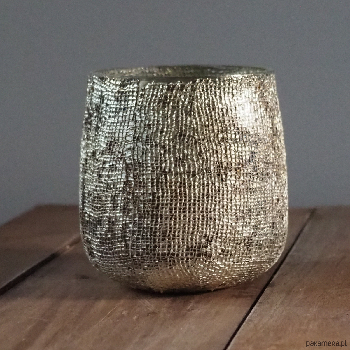 Wykonany ze szkła, ten lampion na tealight jest jednocześnie subtelny i trwały. Jego urok tkwi w unikatowej fakturze, która filtruje światło, tworząc magiczne cienie.
