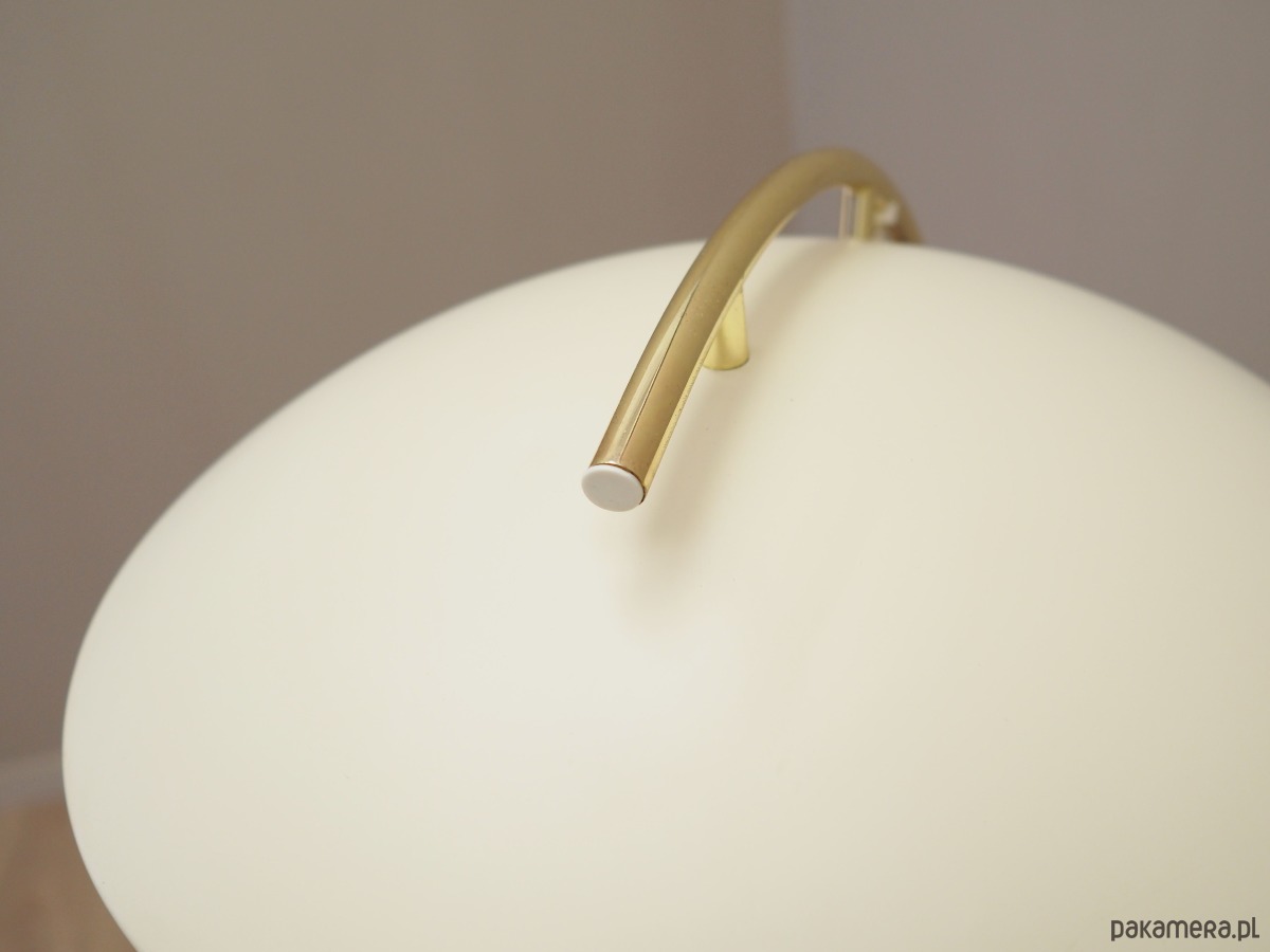 Lampka wykonana z metalu w kolorach białym i złotym. Abażur w kolorze białym.