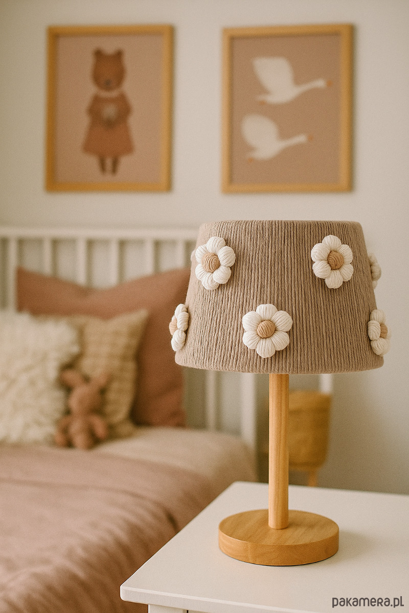 Jeśli szukasz wyjątkowej lampki nocnej do pokoju córki to dobrze trafiłaś, ta lampka jest przedstawicielką klasycznych lampek stołowych. Prosta drewniana podstawa i klasyczny abażur z dodatkiem kwiatków sprawdzi się do wielu sypialni dziecięcych.