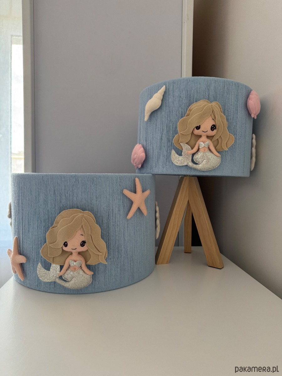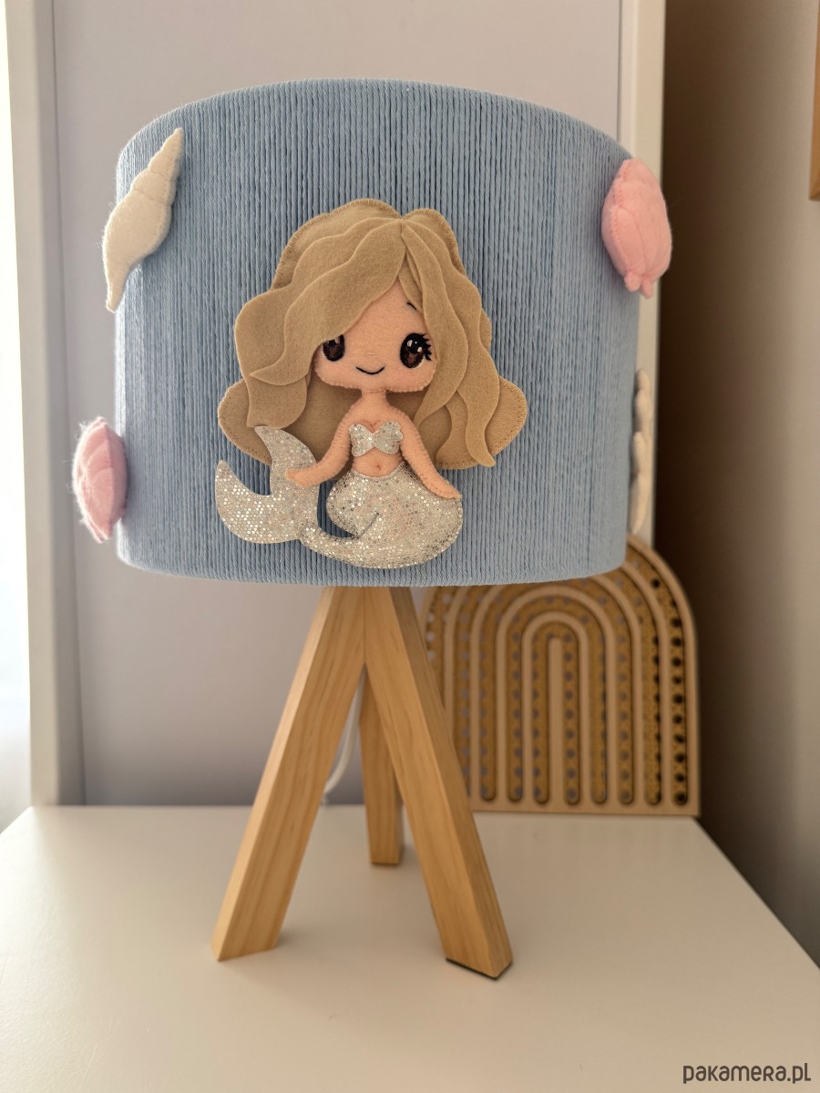 Urocza lampka nocna, która zamieni dziecięcy pokój w magiczną, podwodną krainę. Delikatny, błękitny abażur ozdobiony słodką syrenką oraz pastelowymi muszelkami przyciąga wzrok i tworzy wyjątkowo przytulną atmosferę.