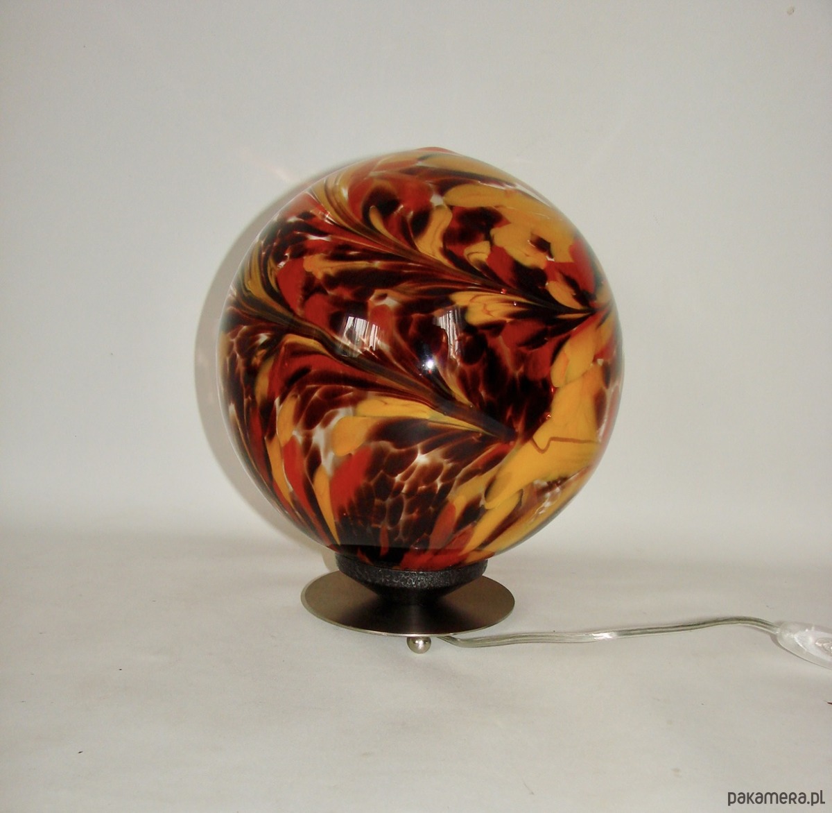 Solidna konstrukcja z metalu i szkła sprawia, że lampka łączy w sobie trwałość oraz elegancję charakterystyczną dla designu tamtych lat. Jej kształt i kolorystyka wpisują się zarówno w aranżacje retro, jak i nowoczesne.