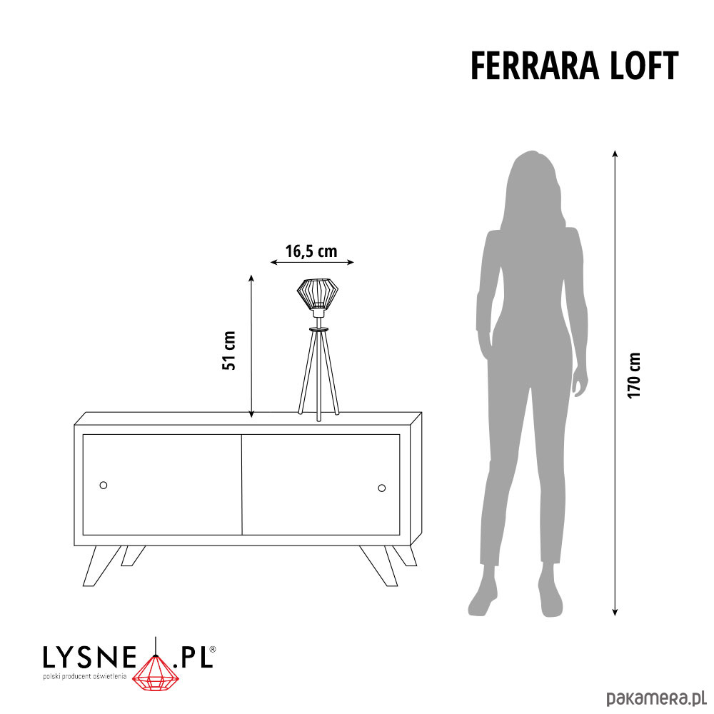Lampa industrialna na biurko FERRARA LOFT została stworzona przede wszystkim z metalu. Oświetlenie świetnie komponuje się z takimi elementami jak drewno, szkło czy beton. Lampy w industrialnym stylu cechują się przede wszystkim prostotą i minimalizmem, dlatego też świetnie odnajdują się nie tylko w pomieszczeniach loftowych ale i nowoczesnych czy skandynawskich. Lampy industrialne metalowe takie jak FERRARA LOFT to zatem rewelacyjny pomysł na dopełnienie prawie każdej aranżacji, w której dominuje surowy i nieobfitujący w dekoracje design. Oświetlenie to reprezentuje typowe lampy loftowe druciane wykonane głównie z prostych rurek. Lampa nie jest wyposażona w żarówkę.