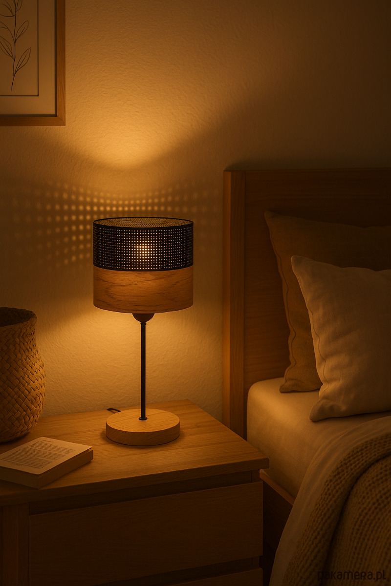 Lampka Nocna Stołowa Dębowa Abażur Fornir E27 LED