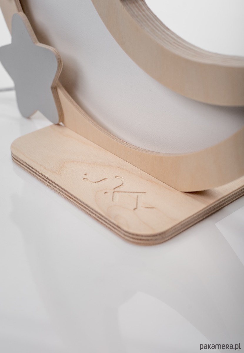 Lampka Unky wykonana jest z naturalnej sklejki drewnianej, pokryta bezpiecznymi farbami wodnymi , dopracowana w najmniejszych szczegółach. Projektowana i produkowana całościowo w Polsce.