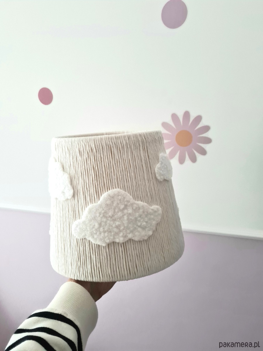 Naturalne materiały Bawełniany sznurek oraz puszyste aplikacje pięknie rozpraszają światło, tworząc miękką poświatę w pokoju dziecka. Co więcej, naturalne materiały dodają wnętrzu ciepła i autentycznego uroku, wpisując się w styl eko i boho.