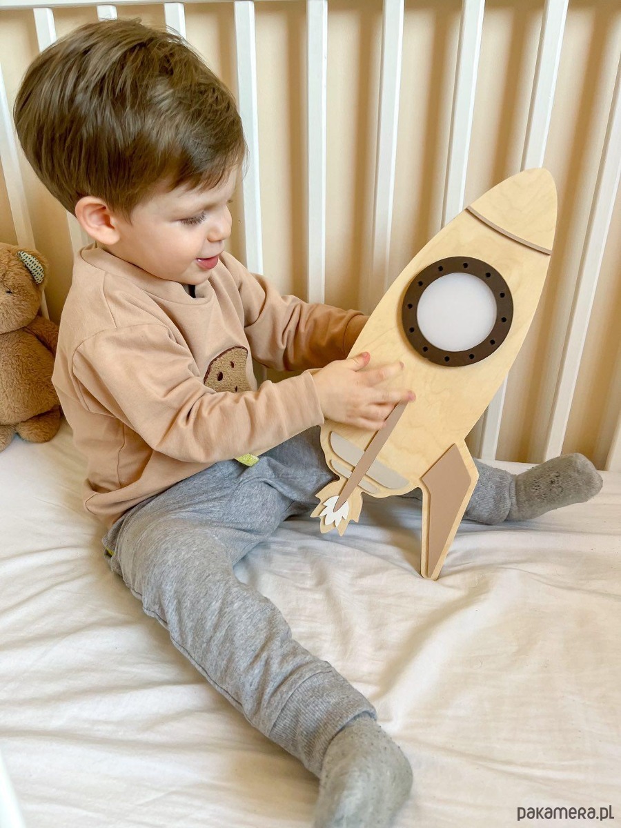 pilota wtedy z odległości 5m możemy wyłączyć bądź włączyć lampkę. Dzięki temu możemy też nie wchodząc do pokoju zobaczyć dziecko w środku nocy.