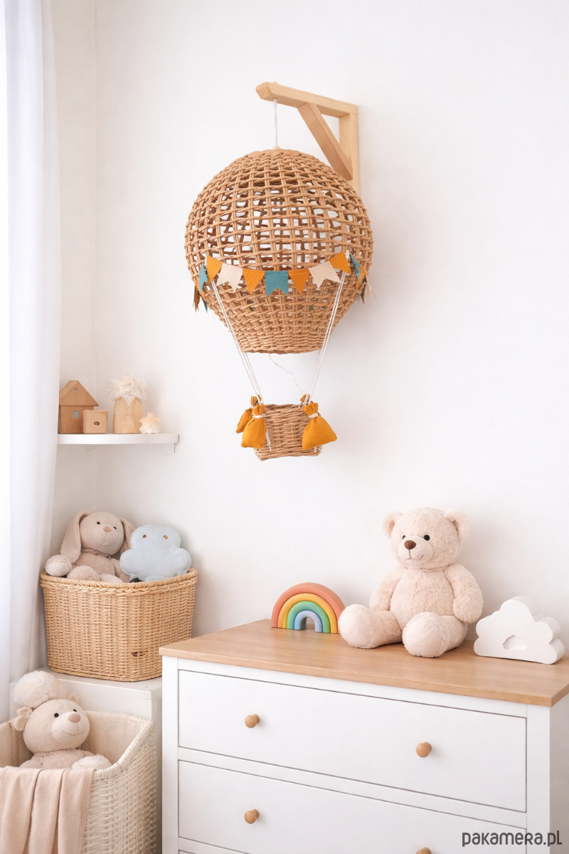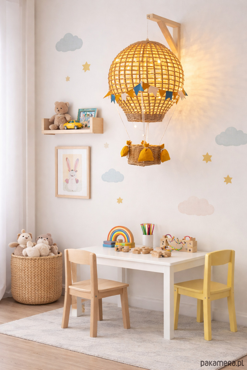 Stwórz ciepłą i bajkową atmosferę w pokoju dziecka dzięki tej lampce nocnej w kształcie balonu na gorące powietrze