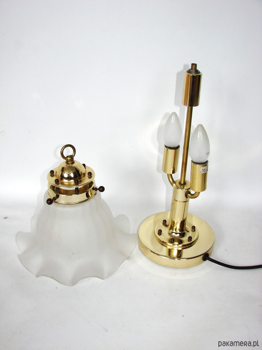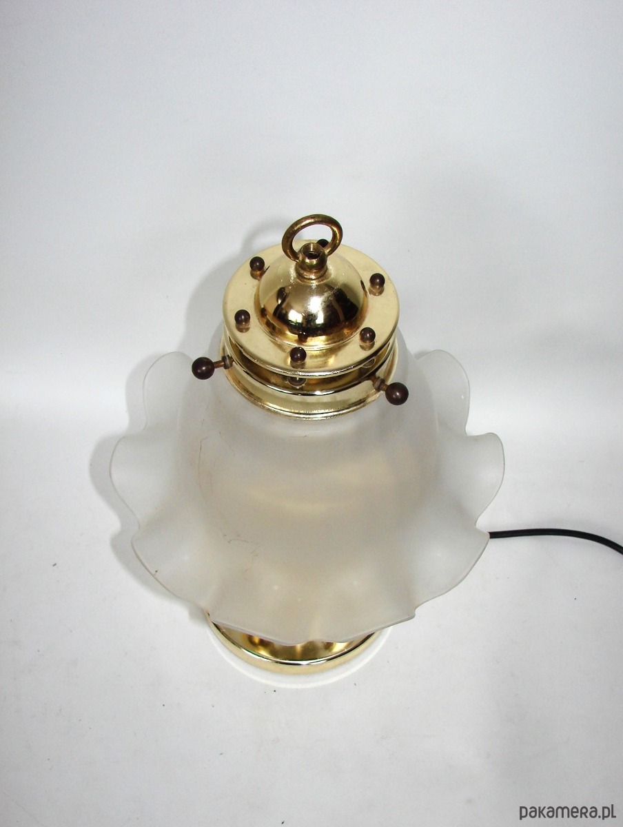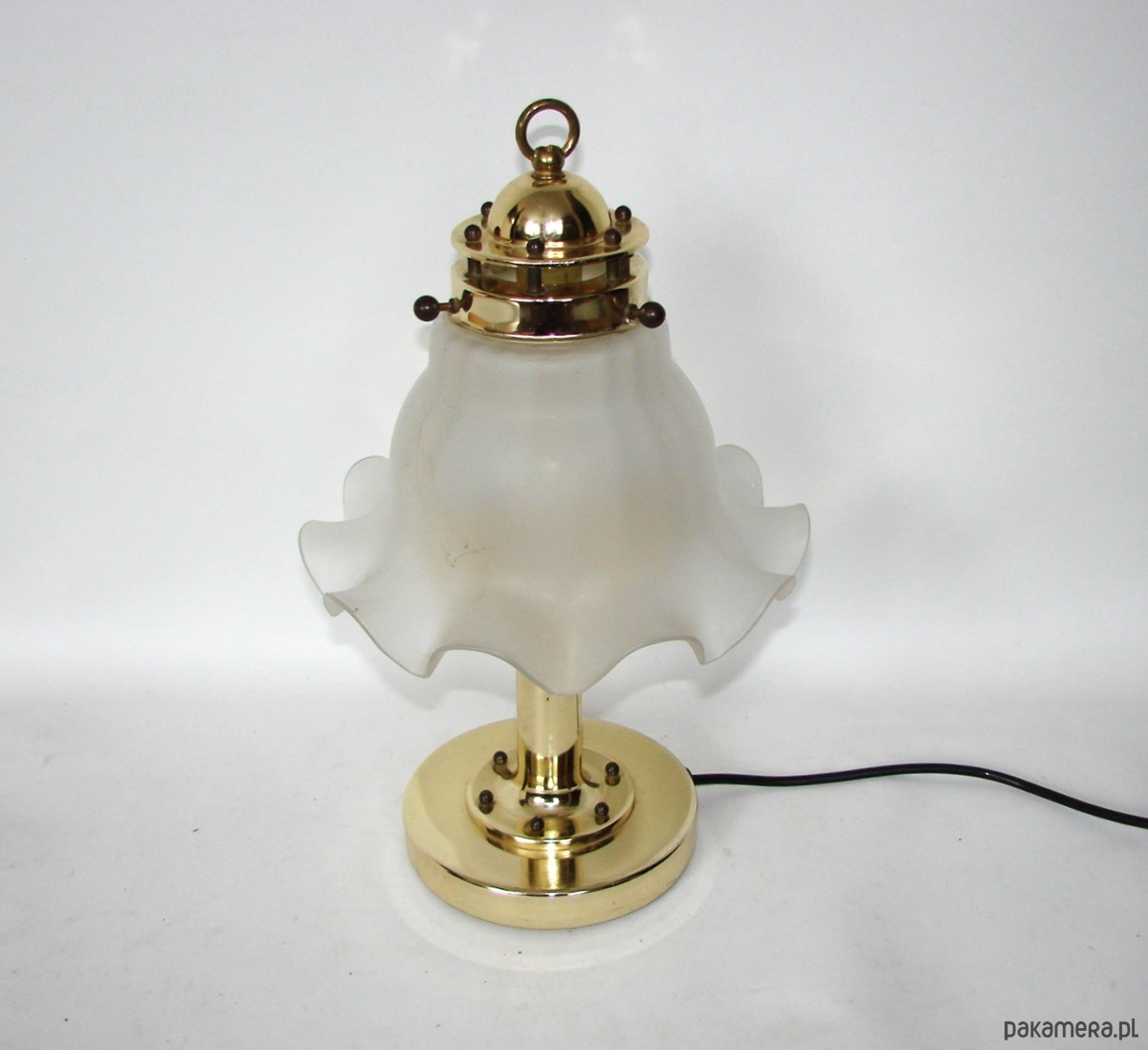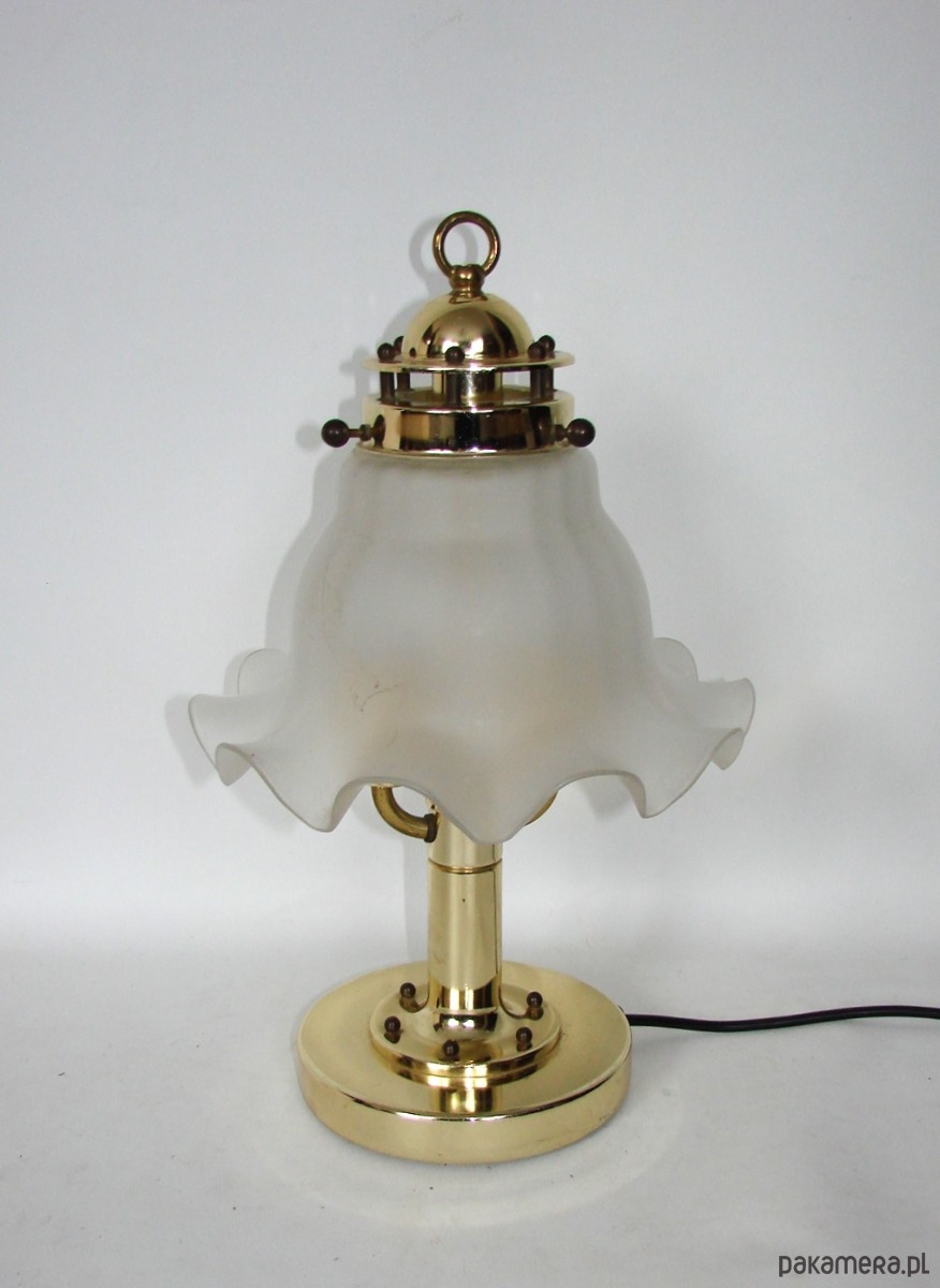 Lampka stołowa Peill & Putzler, lata 70. Została wykonana z mosiądzu i szkła. Lampa wymaga 2 żarówek E14