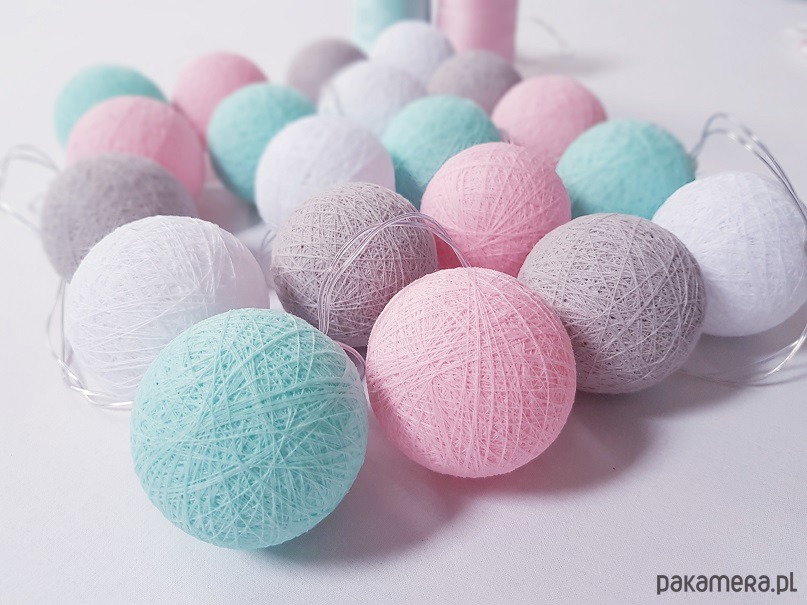 Lampki Cotton Balls 20 led miętowo-różowe, świecące kule na baterie