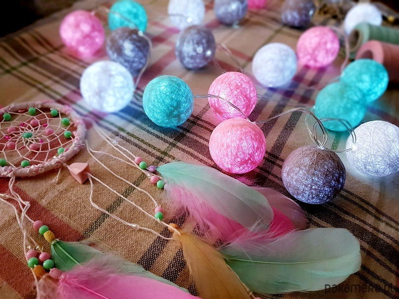 Kule do lampek cotton balls wykonywane są ręcznie, z naturalnych - bawełnianych nici, co nadaje im niepowtarzalny charakter. Staranność wykonania, wysoka jakość użytych materiałów, oraz gęsty splot nici sprawiają, że nasze kule nie potrzebują wewnątrz plastikowego szkieletu. Zastosowana przez nas technologia produkcji sprawia, że nasze lampki cotton balls są o wiele bardziej estetyczne niż ich tańsze odpowiedniki.