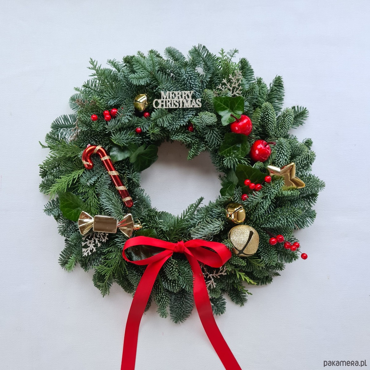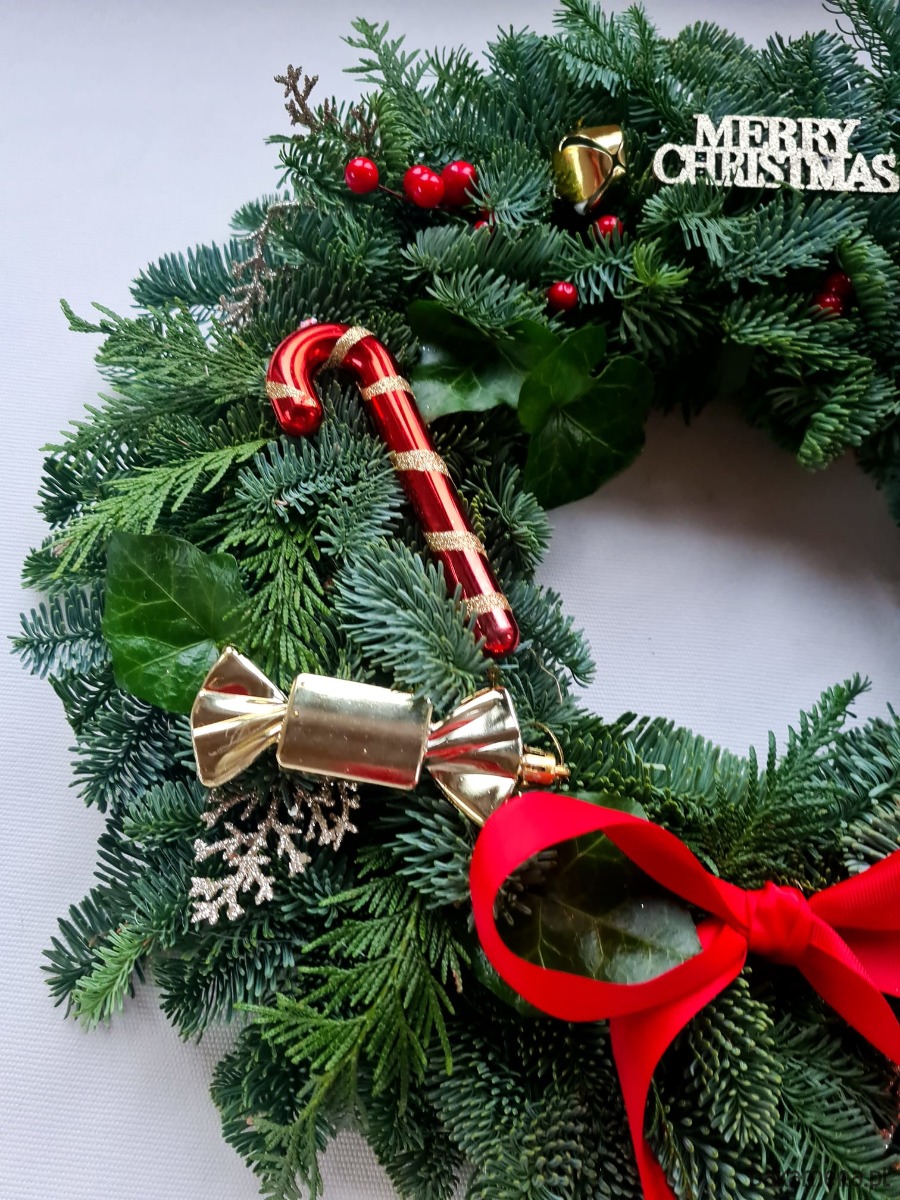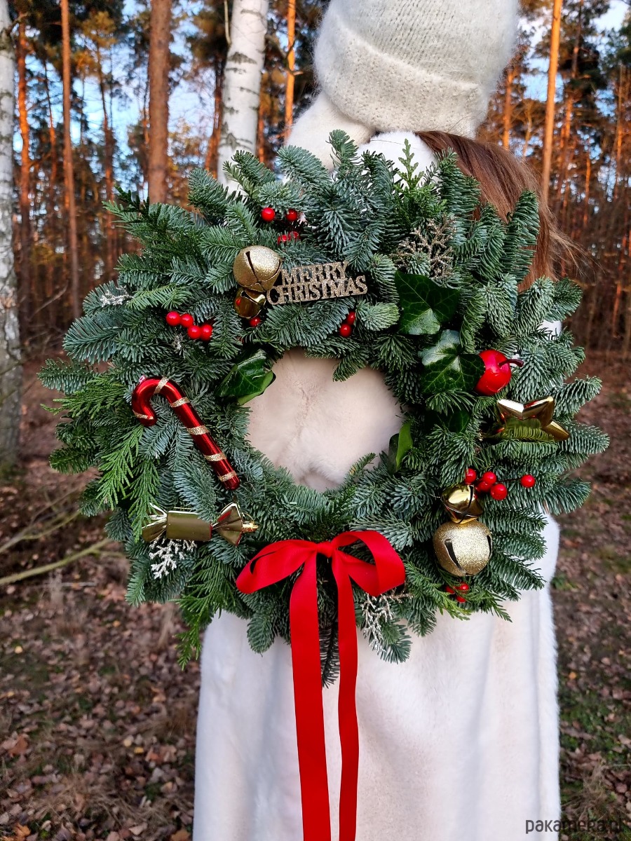 Jodła Nobilis to bardzo wytrzymałe igliwie, nie opada. Wianek będzie prezentował się pięknie nawet kilka miesięcy.