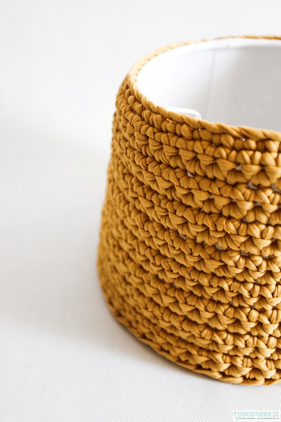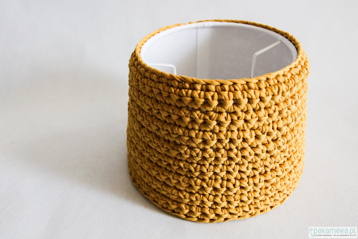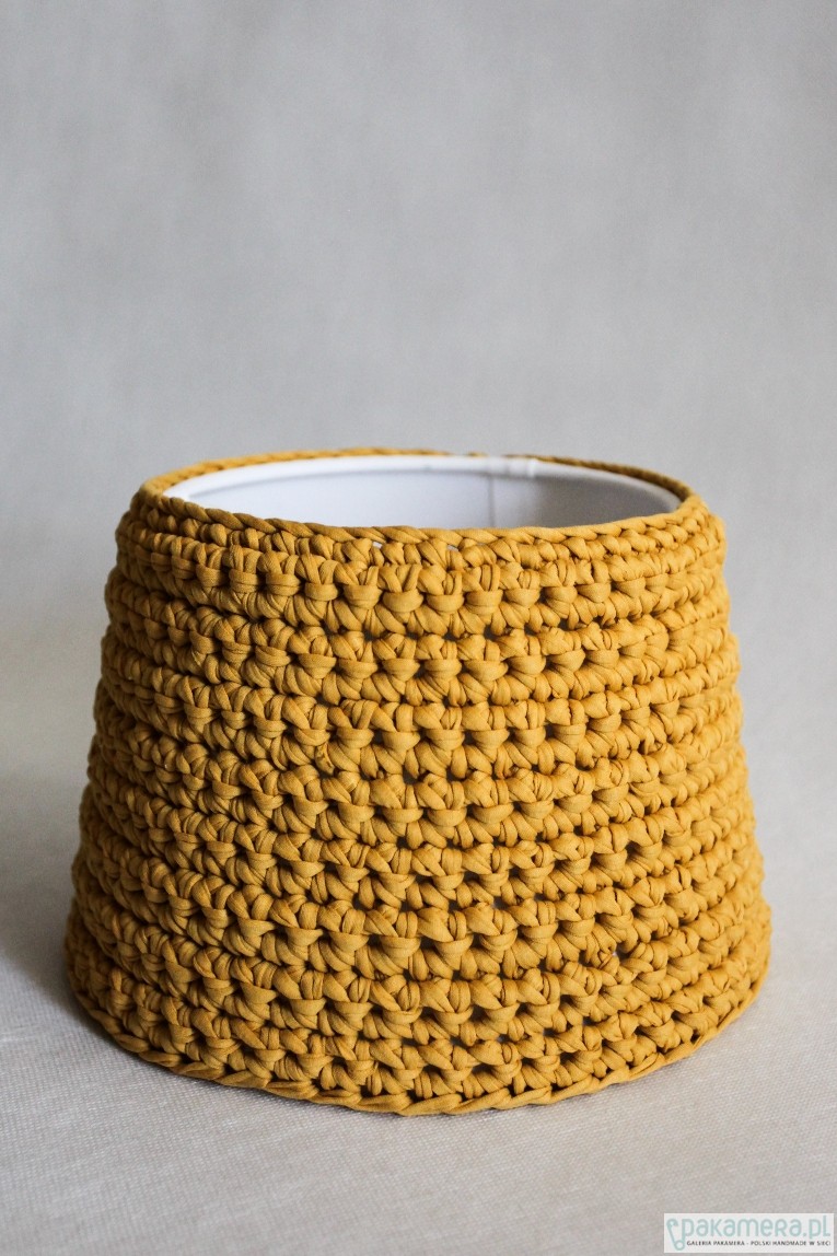 Abażur do lampki nocnej lub do salonu. Tak jak inne nasze akcesoria jest uniwersalny i pasuje do każdego wnętrza! Wystarczy dobrać odpowiedni kolor i gotowe! Materiał: Zpagetti (92% bawełny) Wymiary: średnica na górze 20 cm średnica na dole 25 cm wysokość: 17 cm Abażur można przymocować zarówno od góry jak i od dołu. Zastrzegamy, że kolory w rzeczywistości mogą się nieznacznie różnić od tych na zdjęciach (z powodu użytego sprzetu fotograficznego, oświetlenia, parametrów monitora itp)