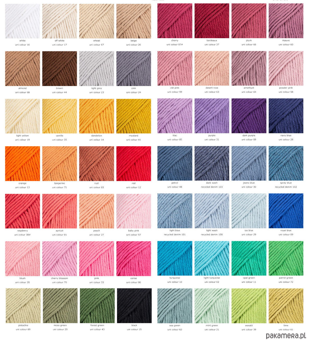 * 100% bawełniana włóczka wyprodukowana w Europie (certyfikat OEKO-TEX - oznacza to, że produkt został skontrolowany i nie zawiera żadnych szkodliwych substancji chemicznych, a więc niebezpiecznych dla człowieka. Klasa I stanowi najwyższy poziom, co oznacza, że produkt jest odpowiedni dla niemowląt i małych dzieci (od 0 do 3 lat).