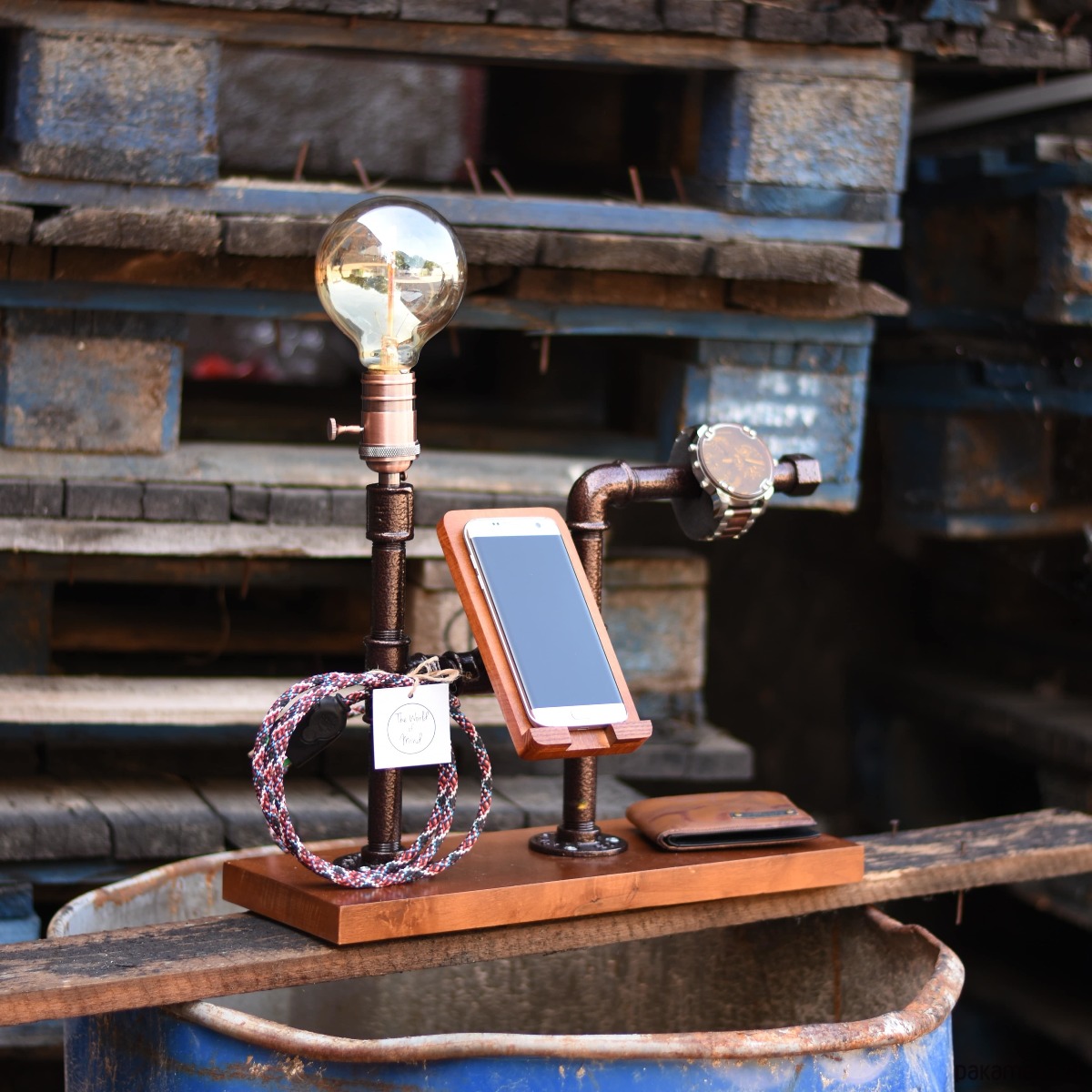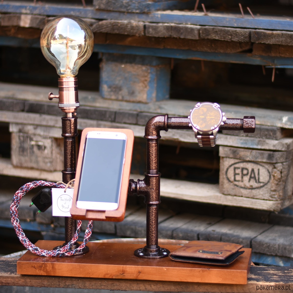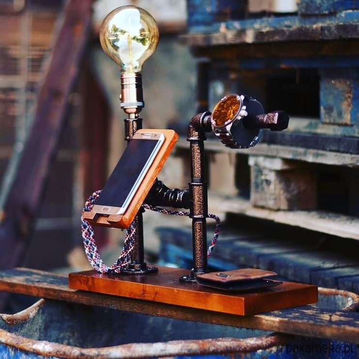 Bardzo męska wersja damskiej toaletki dla mężczyzn, którzy lubią dbać o szczegóły. Miejsce na telefon, portfel, zegarek i nocna lampka w jednym. Idealny patent by od razu po przebudzeniu mieć wszystko co najważniejsze przy sobie