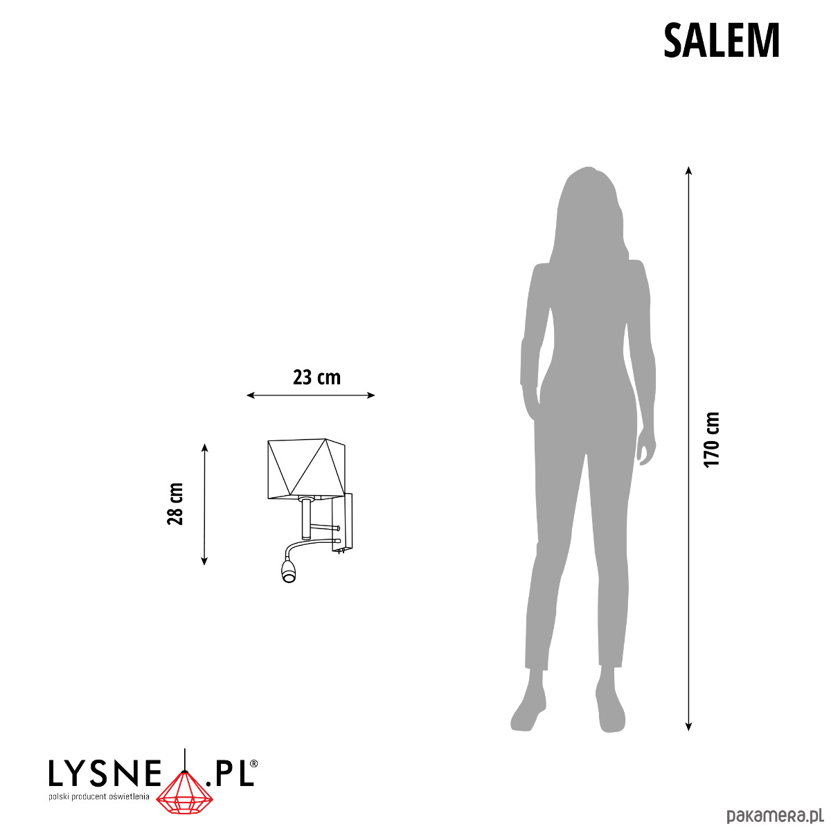 Wymiary lampy (stelaż + abażur): wysokość - 28 cm, szerokość - 23 cm