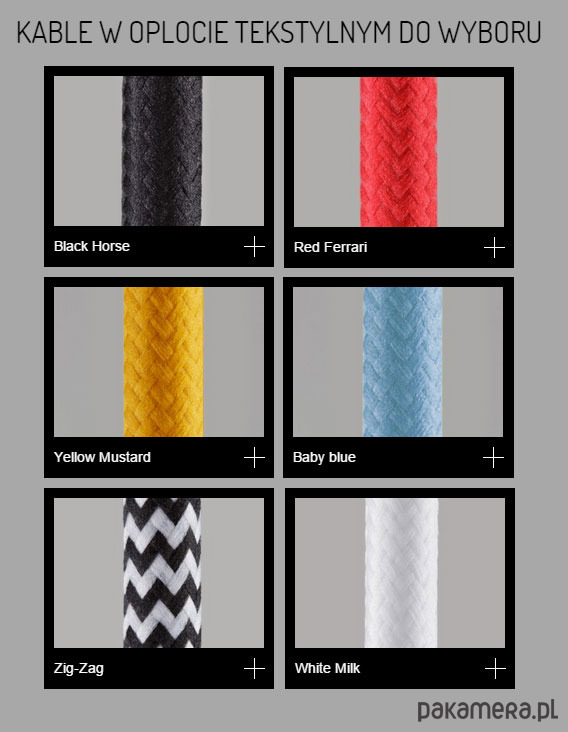 Kabel w oplocie tekstylnym w kolorze do wyboru