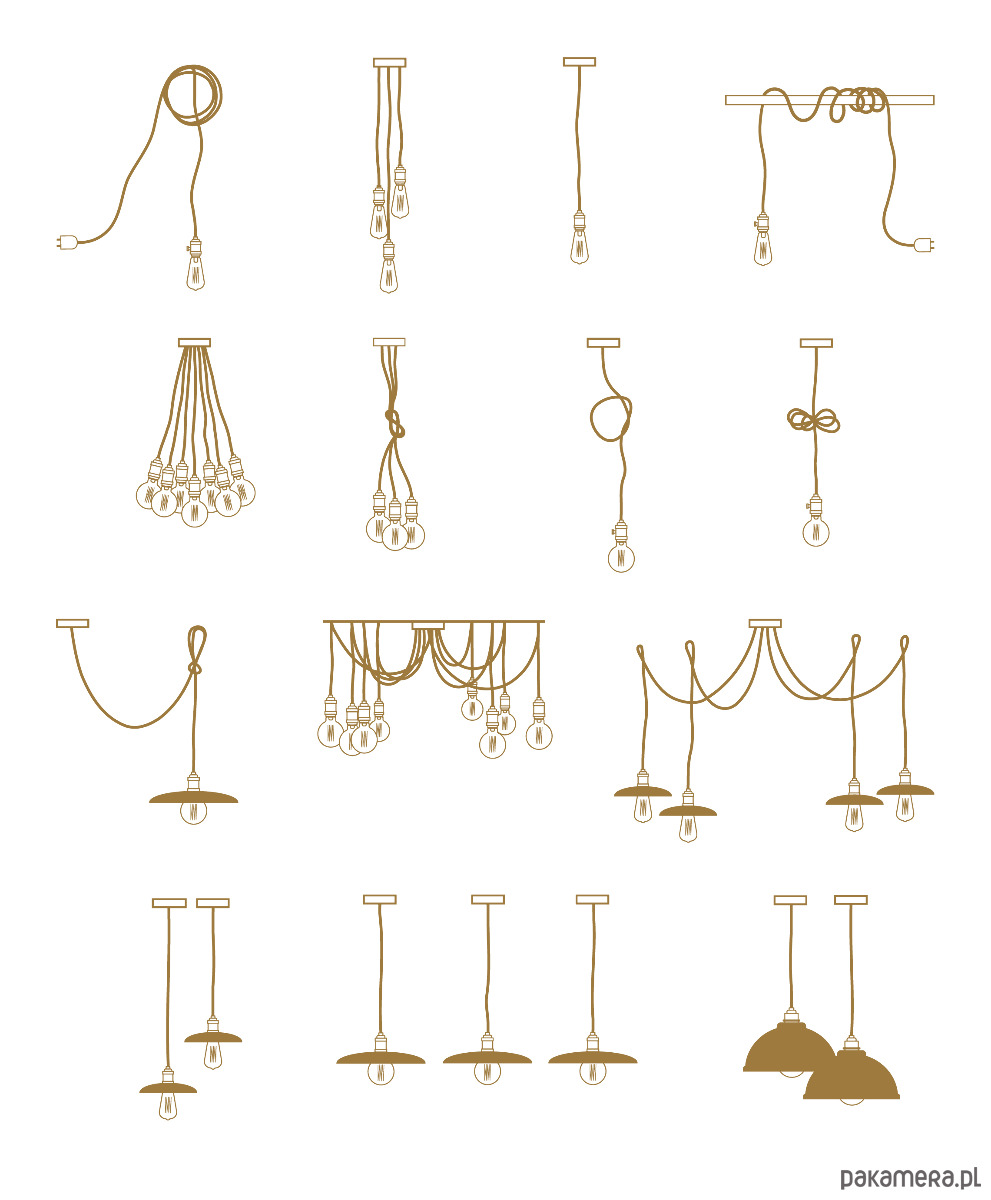 Dostępne także jako wielolampy, kiedy z jednej podsufitki wychodzi kilka sznurów. Dostępne sa wielolampy z 2 – 15 kabli na jednej podsufitce