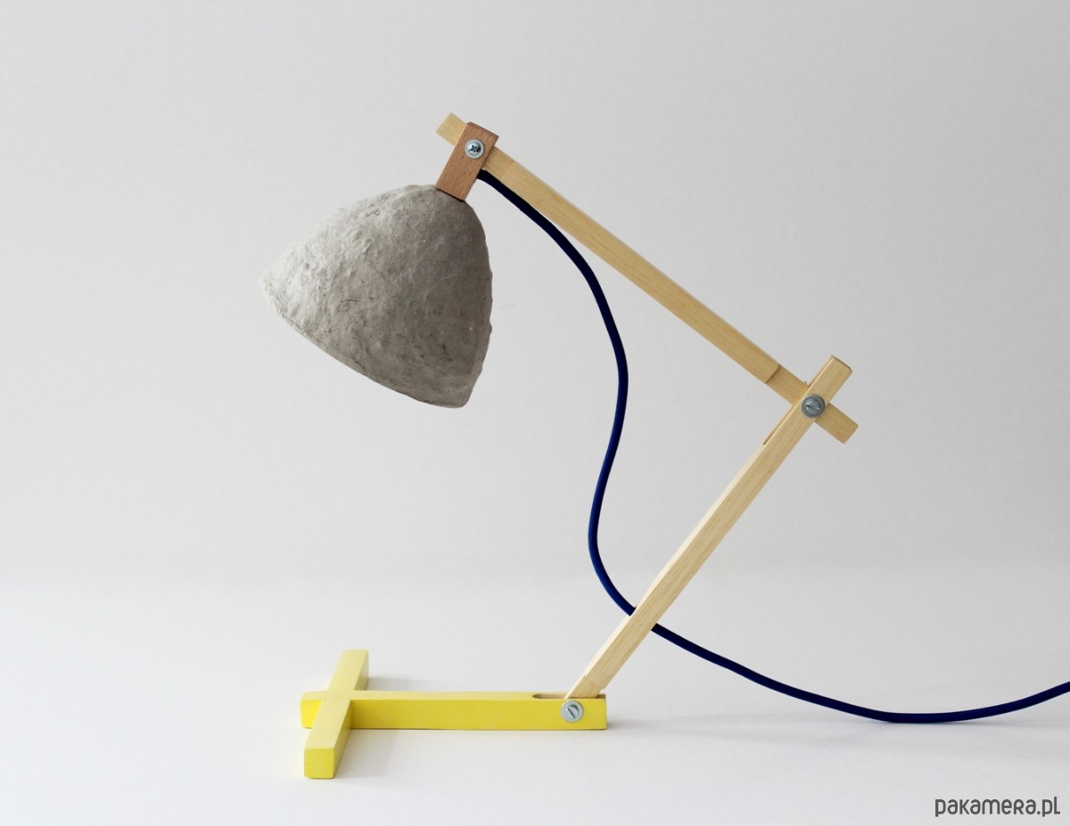 Klosze zrobione są z papierowej pulpy. Każdy klosz jest odbiciem, śladem po zdeformowanej pod wpływem ciepła plastikowej butelce. Baza lampy zrobiona jest z drewna, w jego dolnej partii pomalowanego farbą akrylową. Lampę można z łatwością zmontować i zdemontować, nie potrzeba do tego żadnych narzędzi. Jej wysokość można dopasować według uznania. Do lampy dołączony jest kolorowy kabel w tekstylnym oplocie. Należy używać wyłącznie żarówki ledowej. Żarówka nie jest zawarta w cenie. Wymiary: 40 cm wysokości (wysokość można regulować) x 30 cm szerokości Lampa jest ręcznie robiona w Hiszpanii