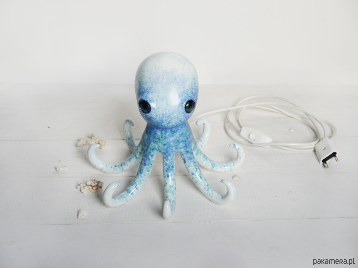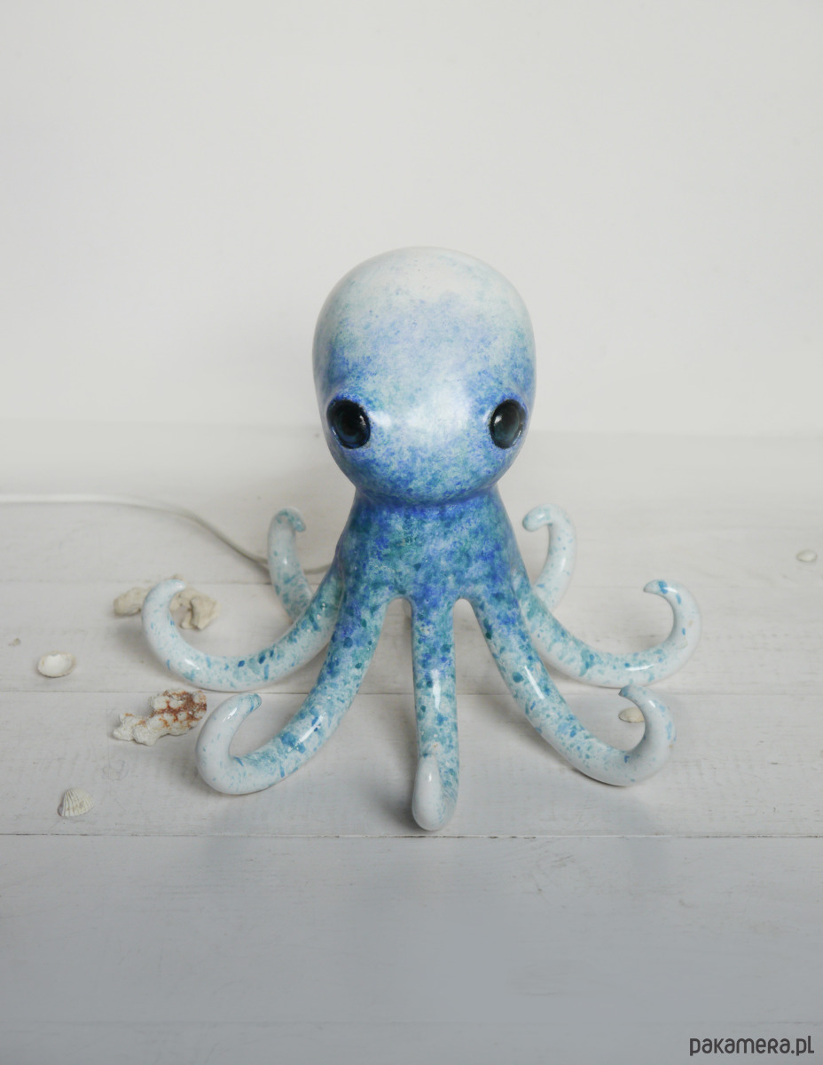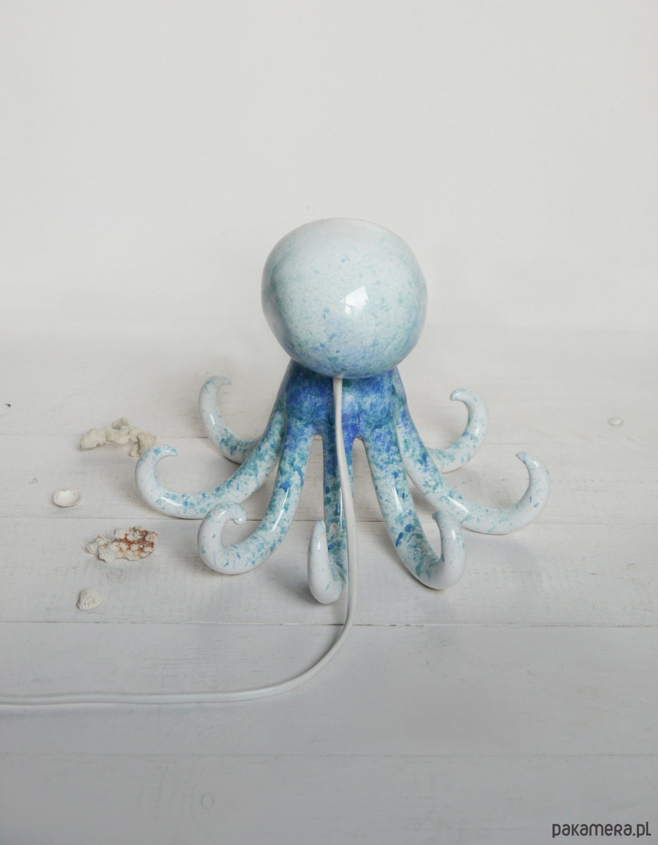Ośmiornica to ceramiczna lampa. W swoim wnętrzu ma zainstalowane ciepłe światło LED, które rozświetla macki, rzucając delikatne cienie. Ośmiornica może służyć jako lampa nocna w pokoju dziecka lub lekkie światło na tarasie czy w pokoju dziennym.