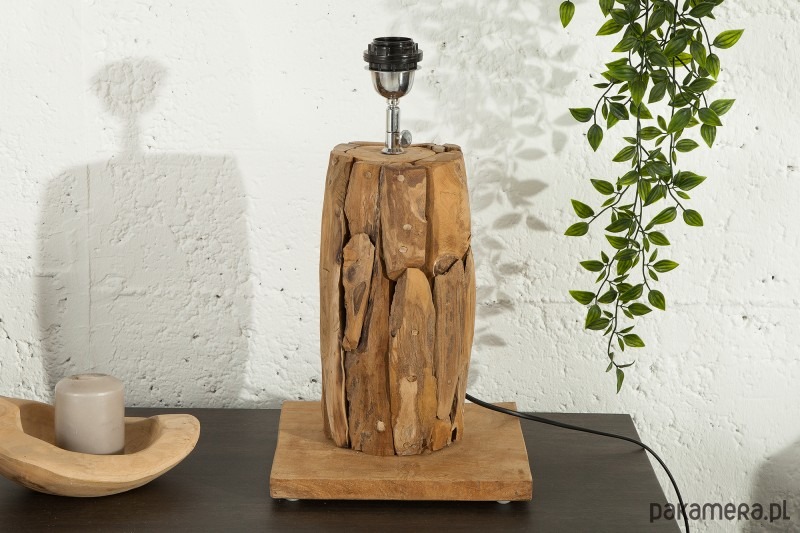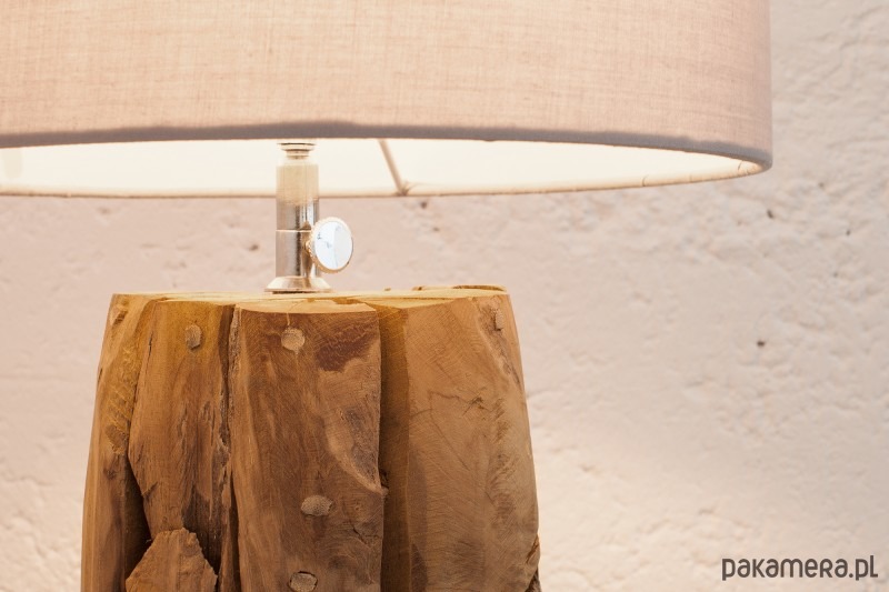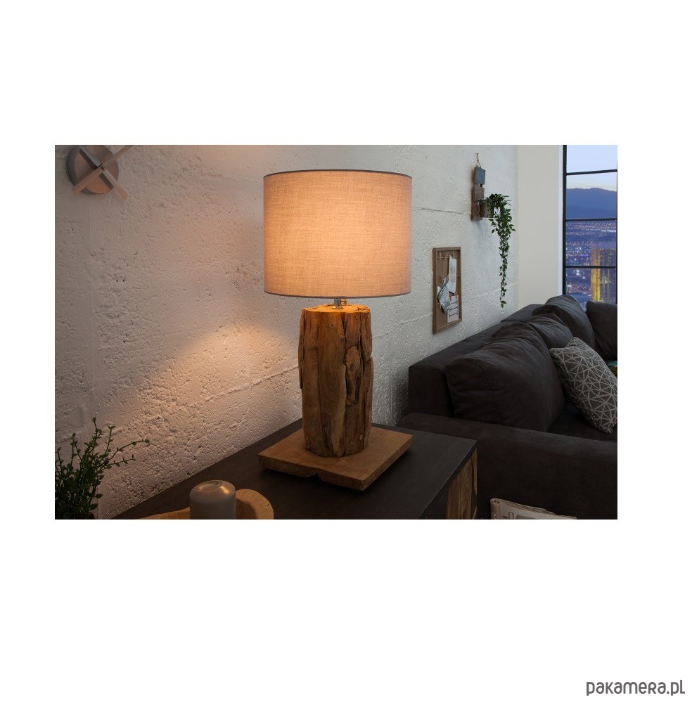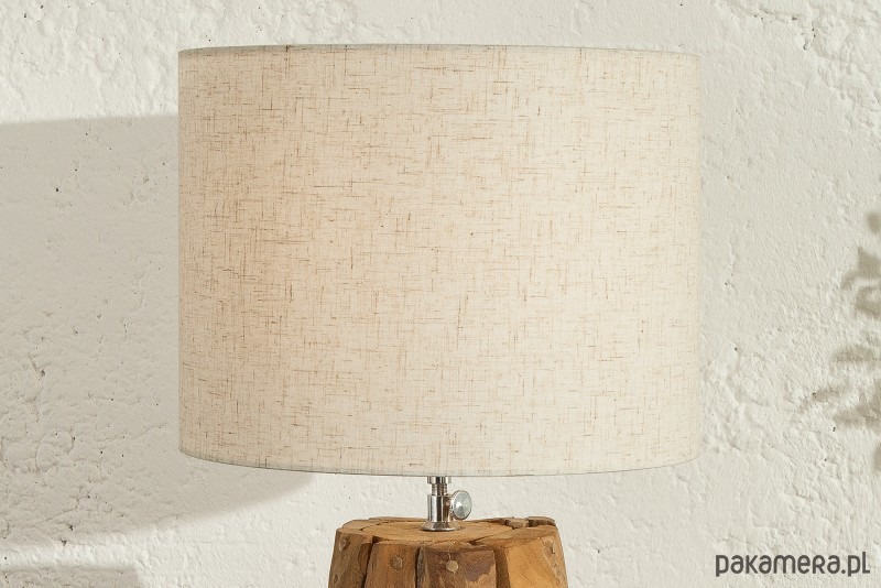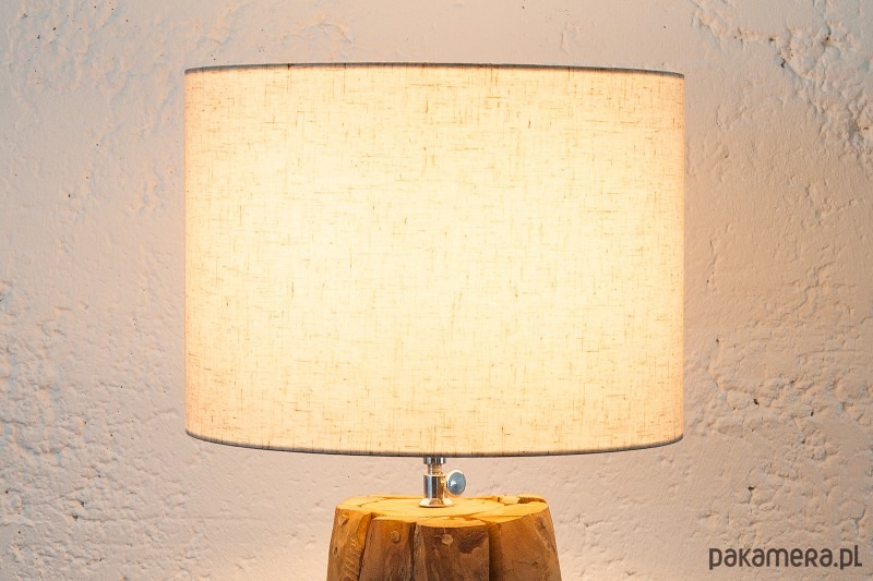 Prosta, elegancka lampa wykonana z zachowaniem wpływów natury. Lampa sprawdzi się w sypialni na szafce nocnej, na biurku w pracowni lub jako dodatkowe oświetlenie w salonie. Lampa łączy w sobie drewnianą, surową podstawę z prostym, eleganckim abażurem.