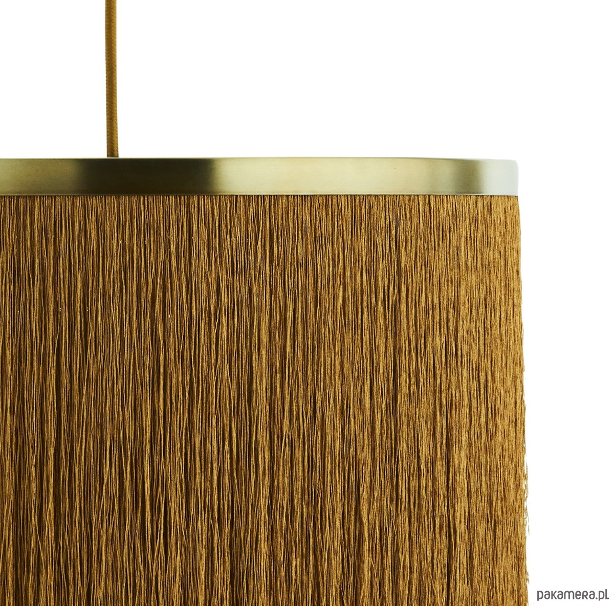 Wyjątkowa lampa, której główny urok stanowią frędzle w kolorze musztardowym umieszczone na metalowej, złotek obręczy. Frędzle to najnowszy hit mody, to atrybut obowiązkowy w modzie ale i we wnętrzach. Kolekcje najważniejszych w branży projektantów zdominowała bowiem estetyka Westernu.