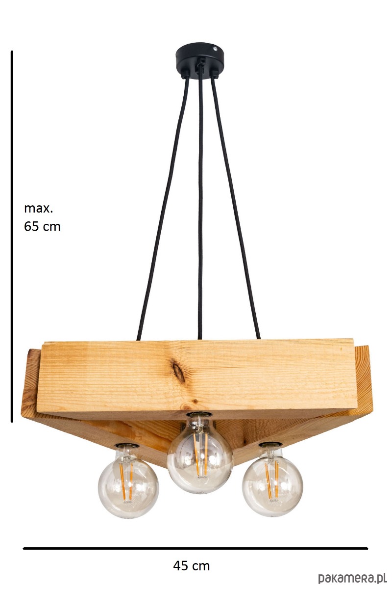 Źródła światła (brak żarówek w zestawie): 3 x E27; 230V; max 60W (w sumie 180W)
