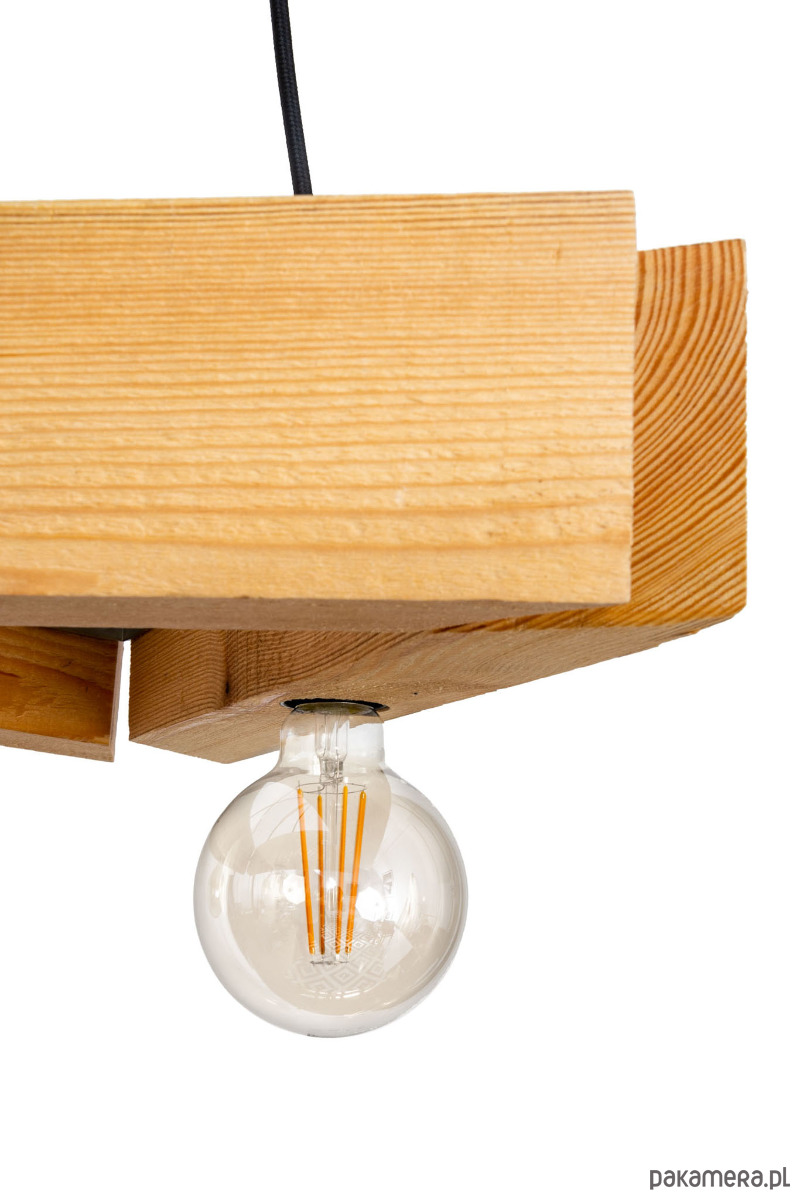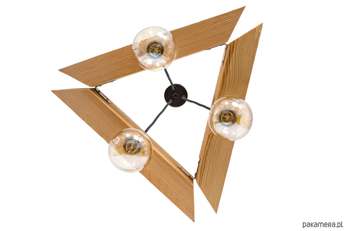 Lampa wisząca Parilla to oświetlenie wykonane z prawdziwego drewna. Lampa została zbudowana z trzech drewnianych elementów tworząc trójkąt. W każdym elemencie zostały umieszczone źródła światła. Oświetlenie Parilla zawieszone jest na trzech kablach w oplocie w kolorze czarnego matu. Całość zakończona została okrągłą, stylową podsufitką. Doskonale sprawdzi się praktycznie w każdym wnętrzu gdzie od lampy wymaga się znacznie więcej niż tylko zwykłego oświetlenia. Znakomicie spełni swoją rolę na przykład w kuchni nad stołem lub w przedpokoju. W lampie Parilla wysokość zawieszenia można regulować poprzez regulację śrubek w podsufitce.