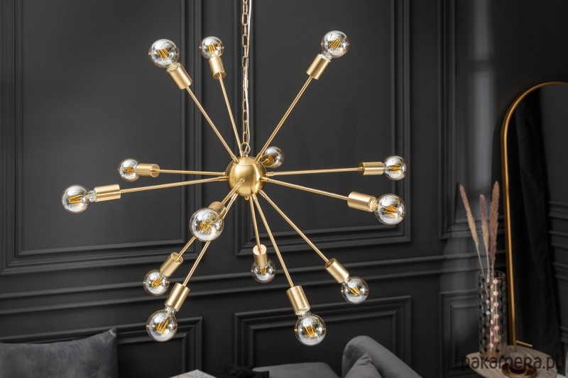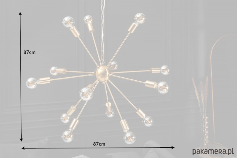 Piękna lampa wisząca, sufitowa Proxima to funkcjonalny dodatek do mieszkań utrzymanych w nowoczesnym stylu, ale również mieszkań w klimacie loftowym i industrialnym. Lampa rozświetli Twoje mieszkanie dodając mu uroku. Lampa wykonana jest z czternastu ramion i zwieńczona jest łańcuchem. Lampa sprawdzi się w domowym salonie, jadalni, ale również w kawiarniach czy restauracjach.