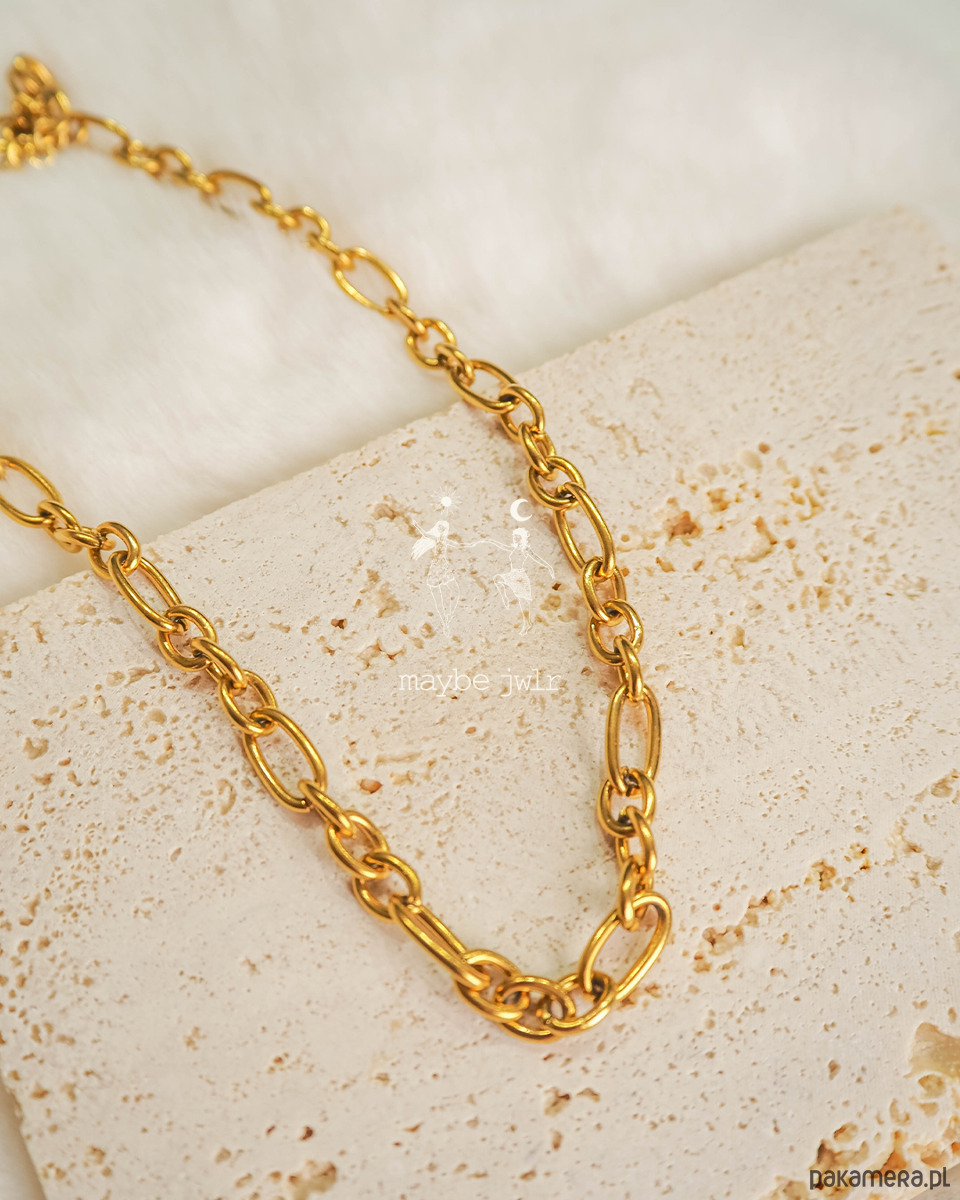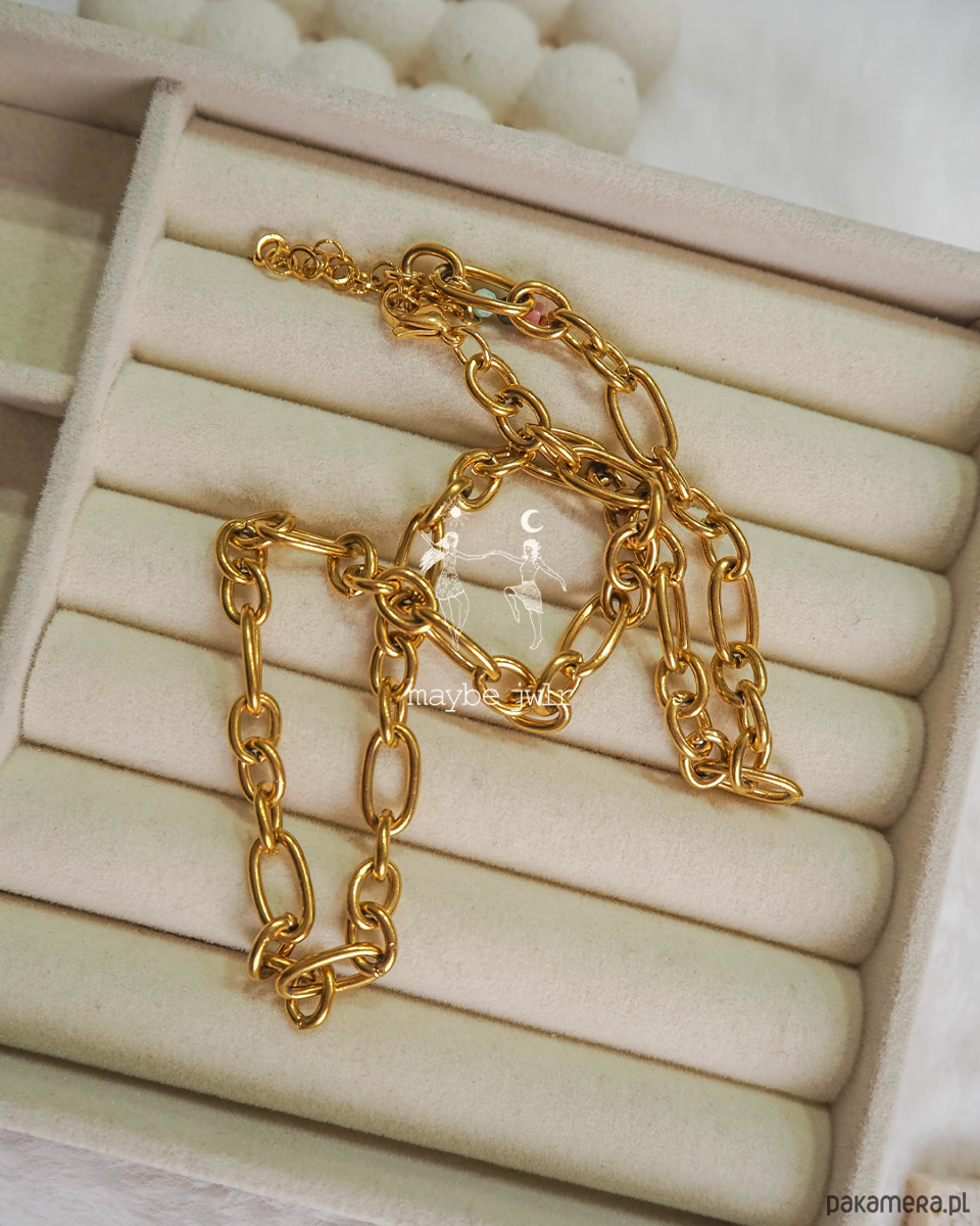 Łańcuszek w modnym wzorze grubego łańcucha, bardzo wyrazisty, pięknie wygląda noszony solo oraz jako zestaw z innymi naszyjnikami.