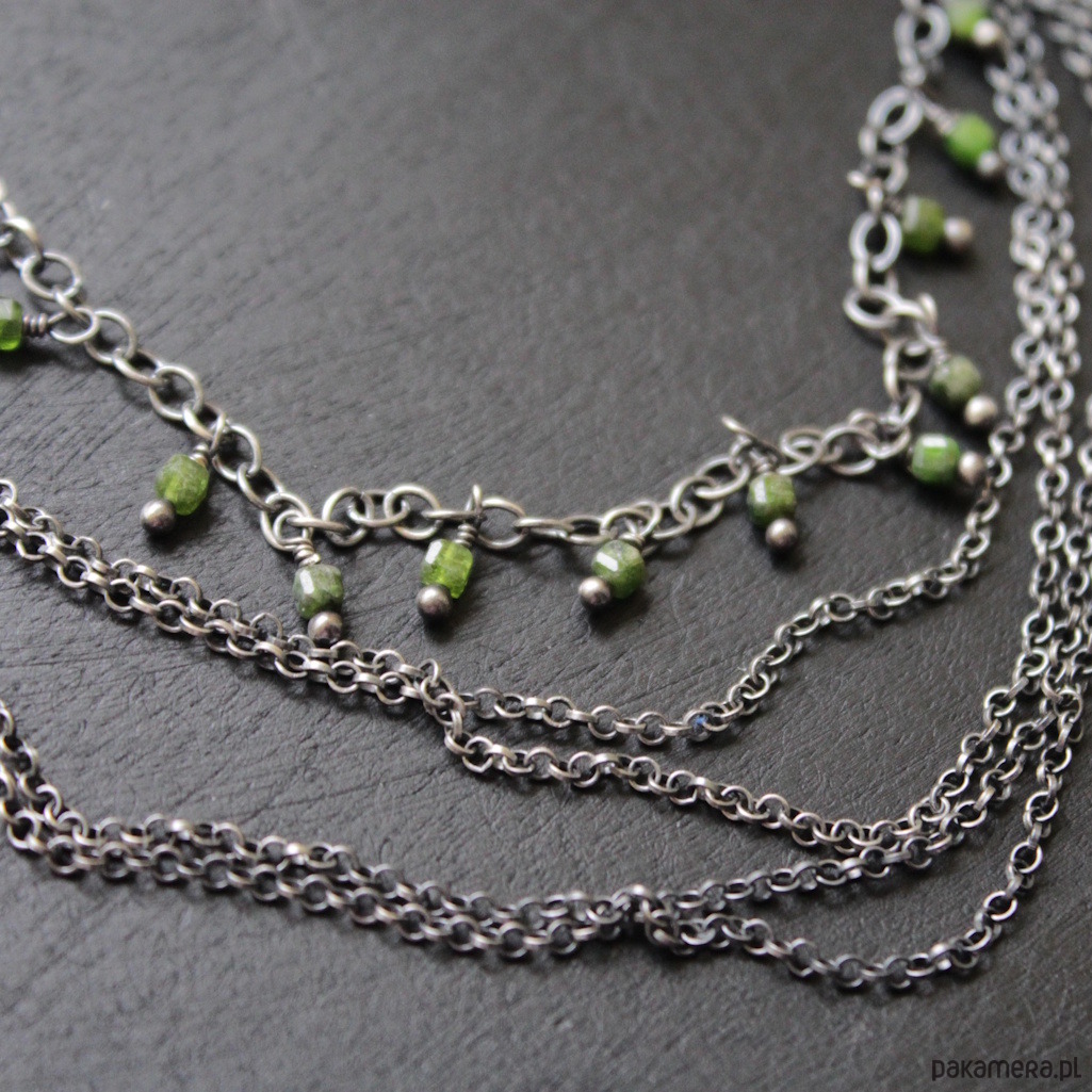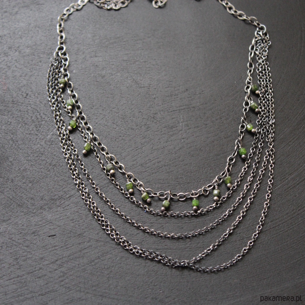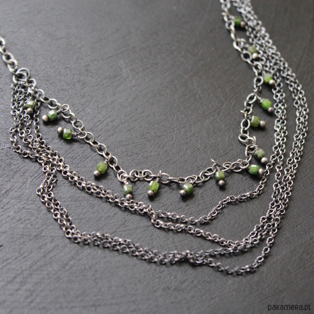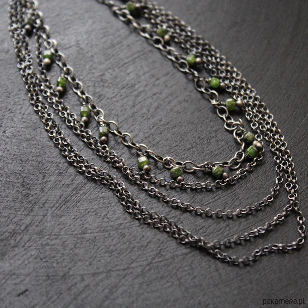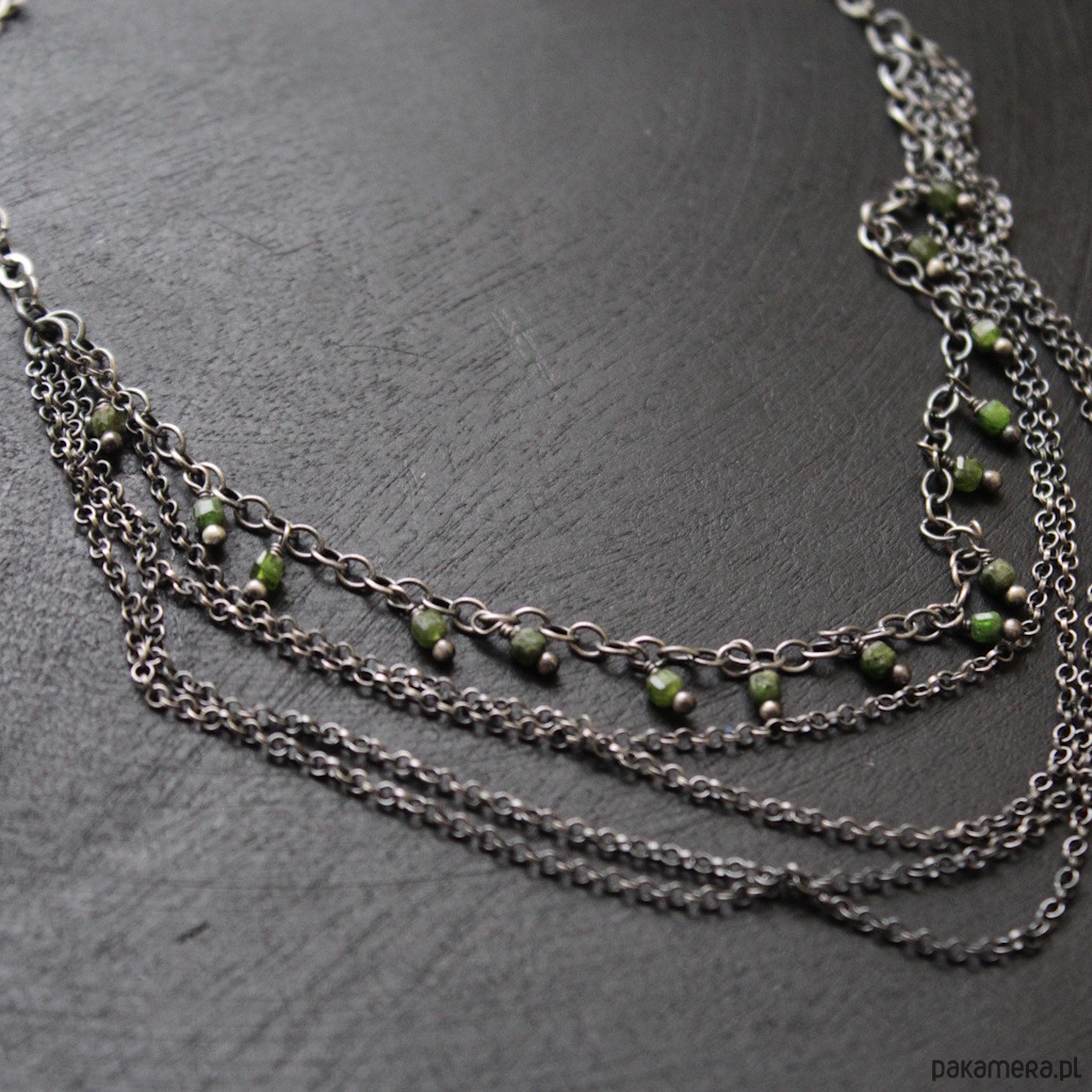 Oksydowane srebro podkreśla przepiękną barwę diopsydów.