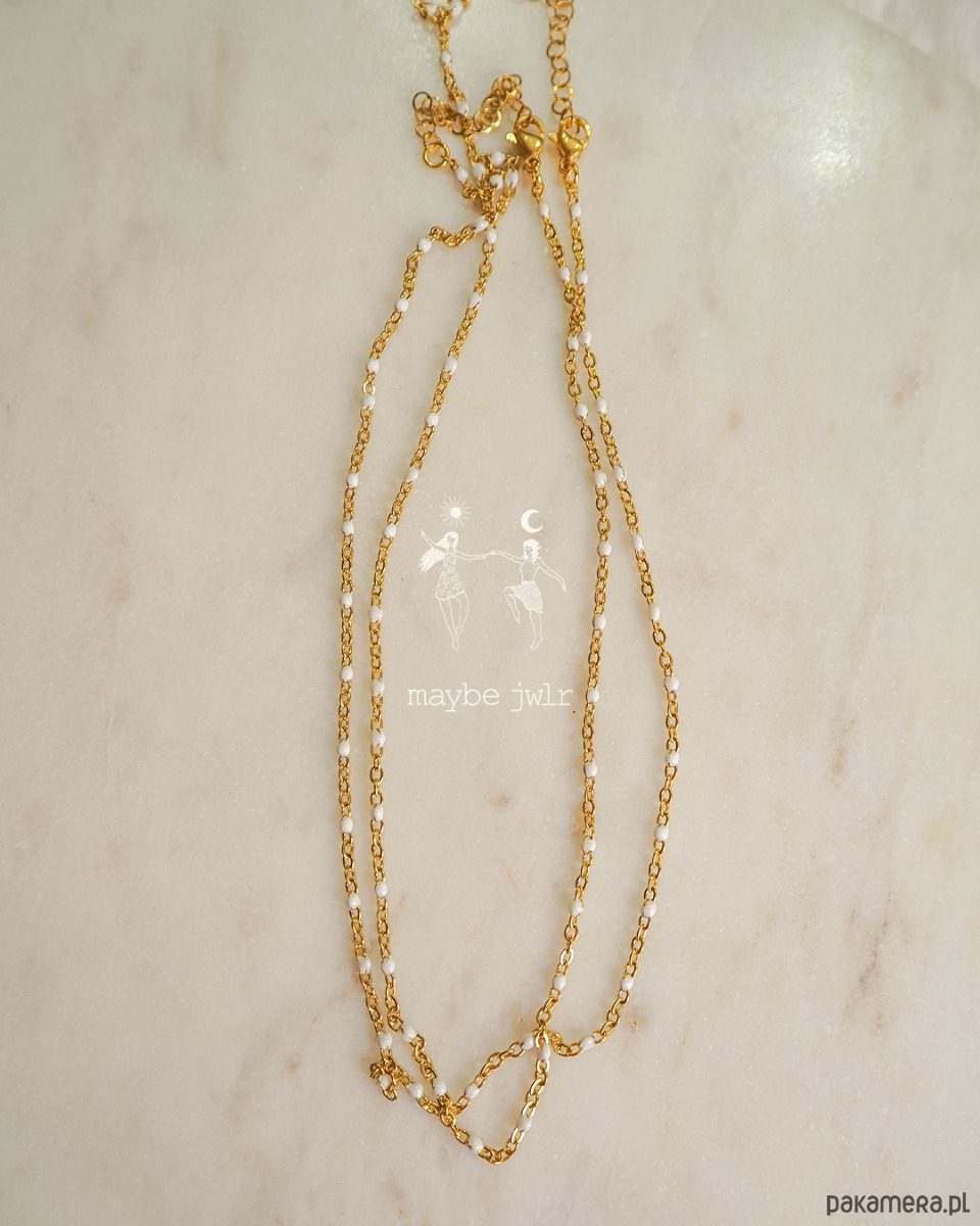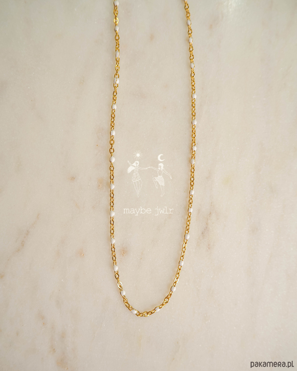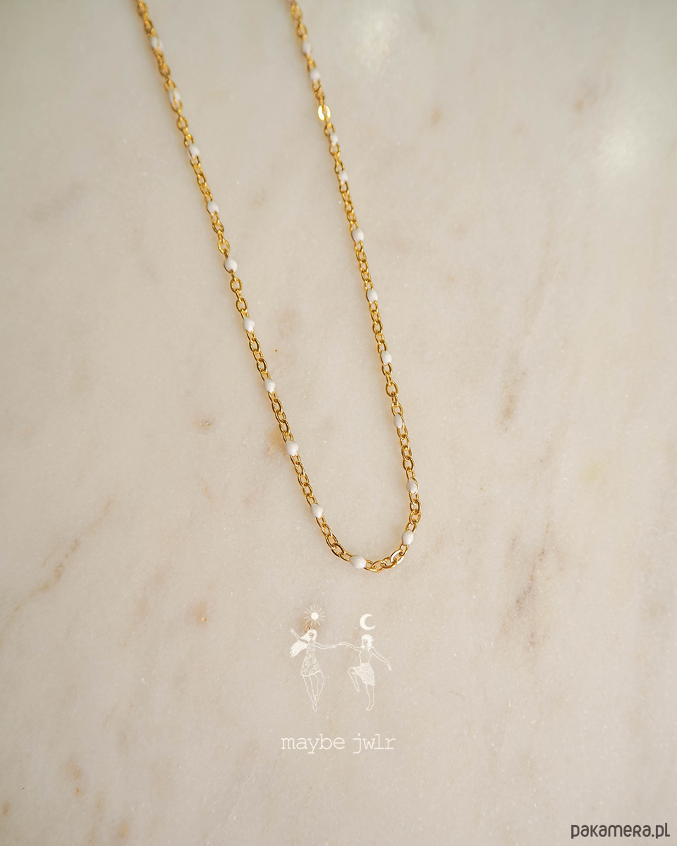 Elegancki i stonowany naszyjnik z drobnymi kuleczkami z emalii.