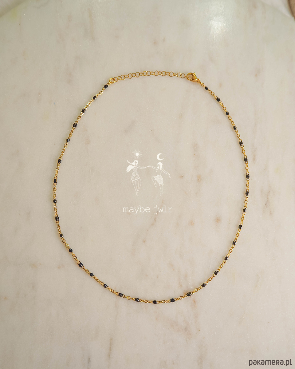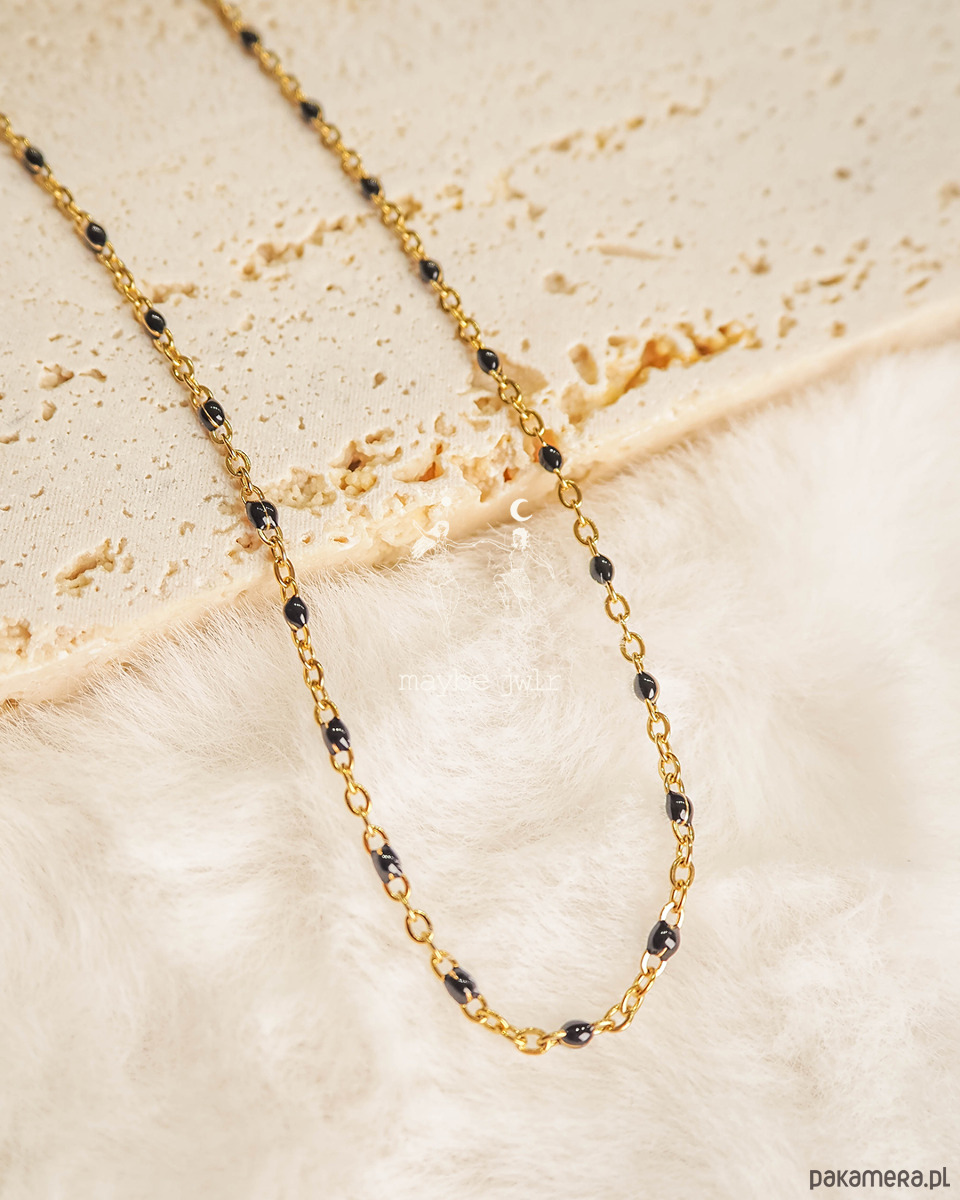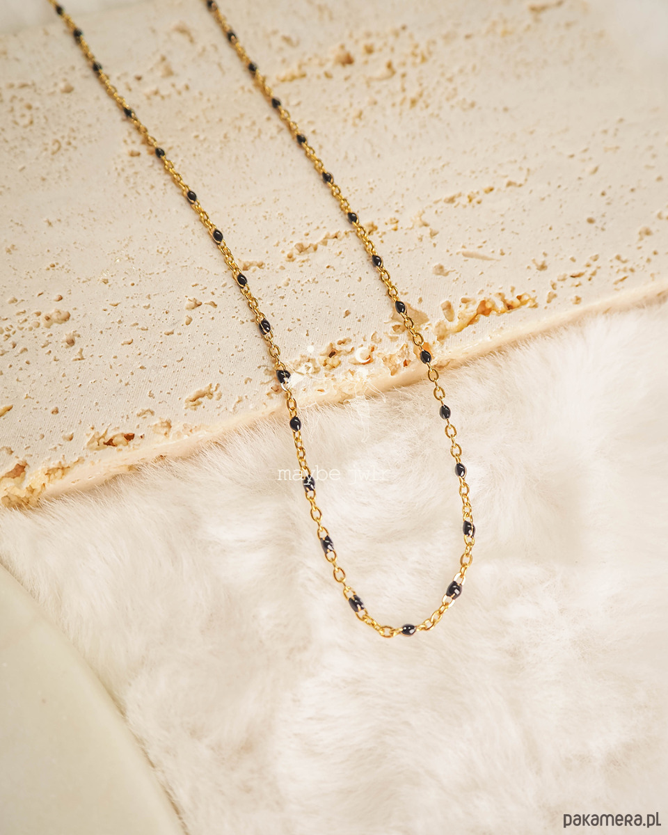 Elegancki i stonowany naszyjnik z drobnymi kuleczkami z emalii.