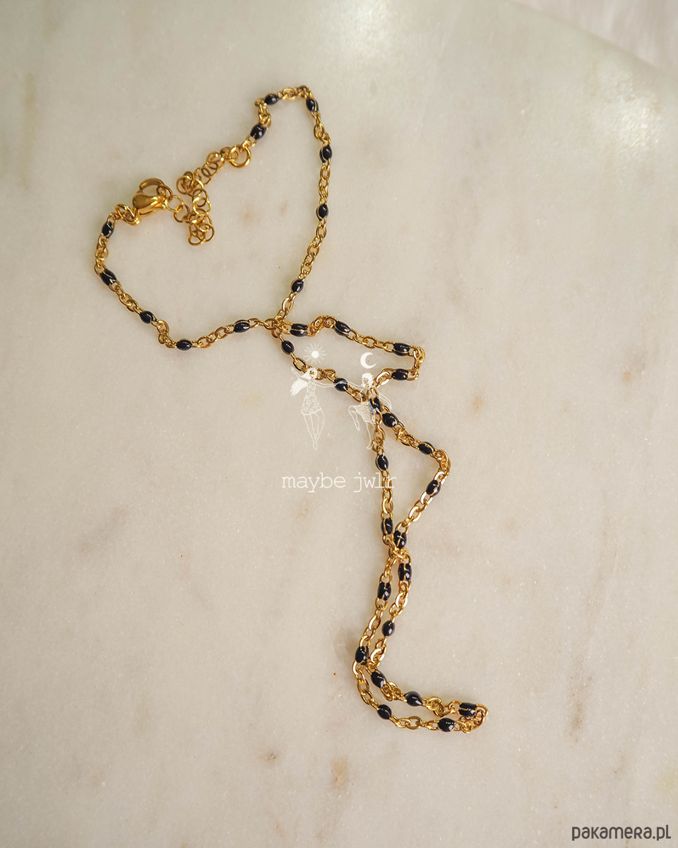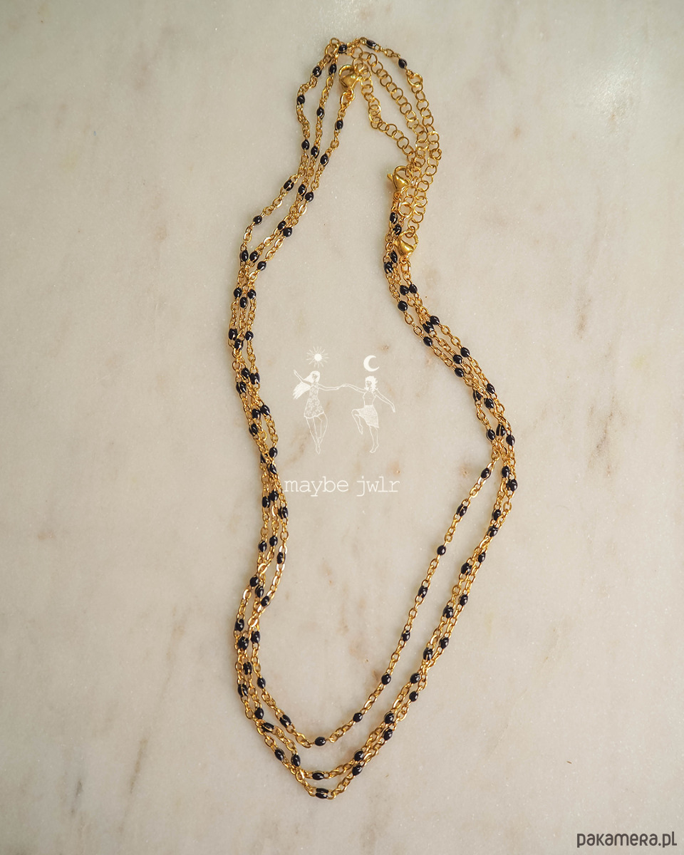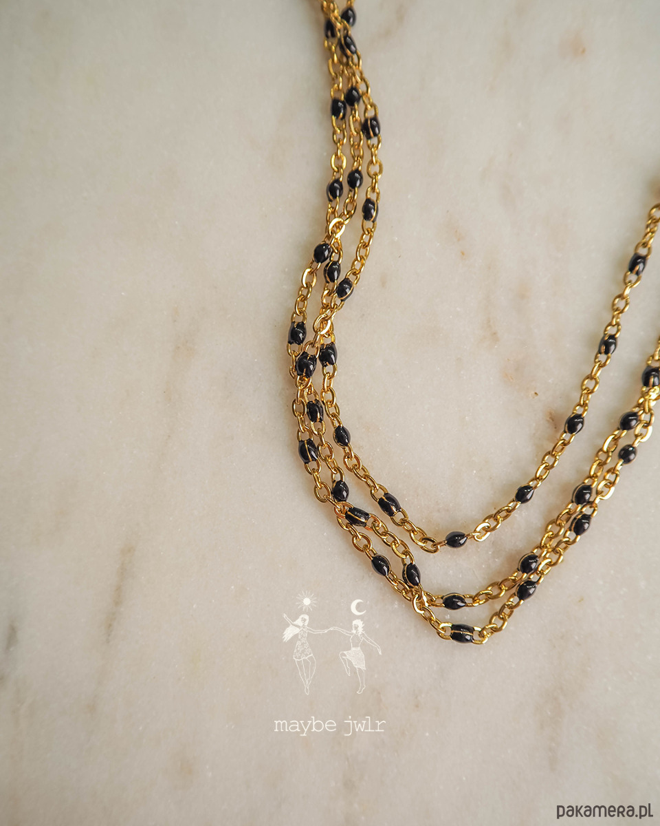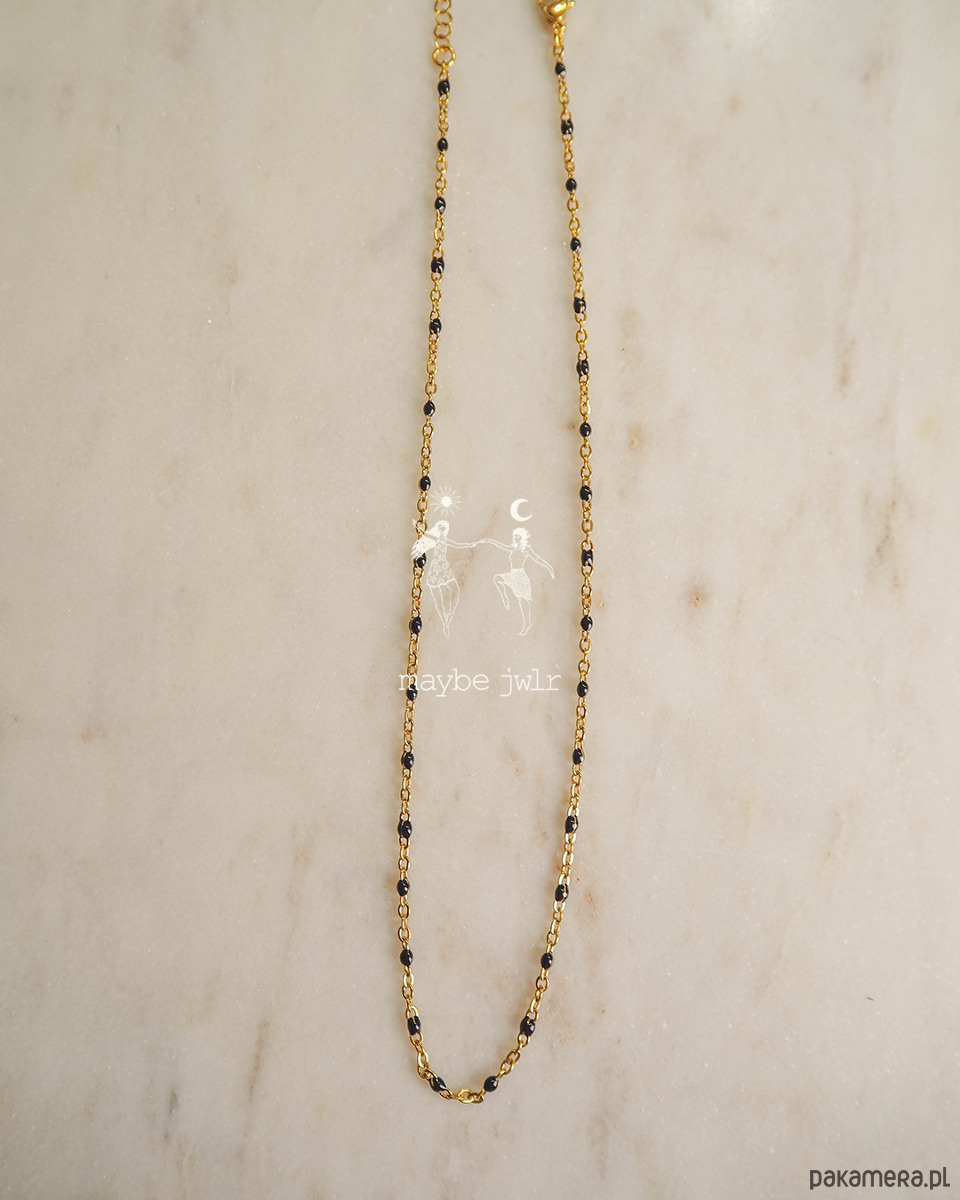 Elegancki i stonowany naszyjnik z drobnymi kuleczkami z emalii.