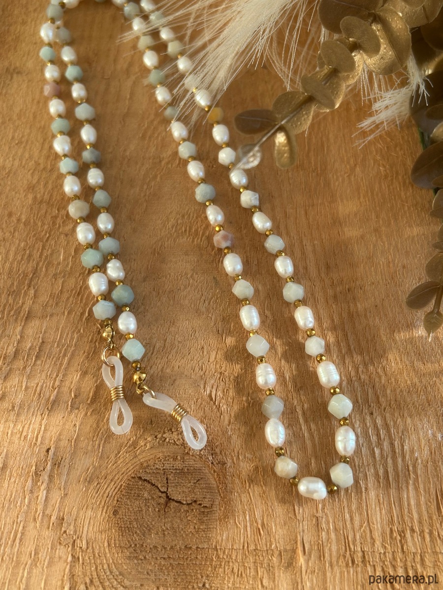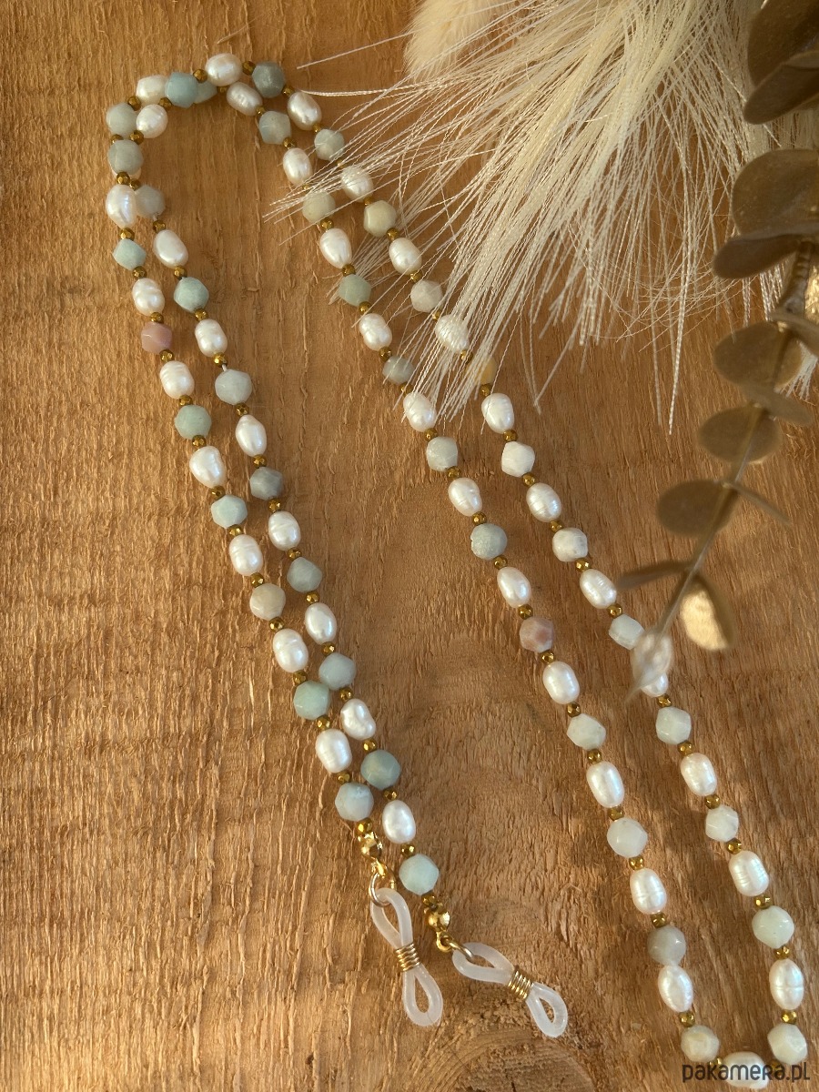 Łańcuszek do okularów z kamieniami i perłami hodowlanymi