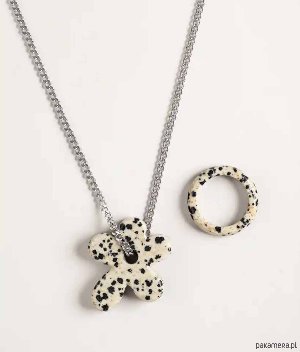 Łańcuszek Flower z zawieszką z jaspisu dalmatyńskiego
