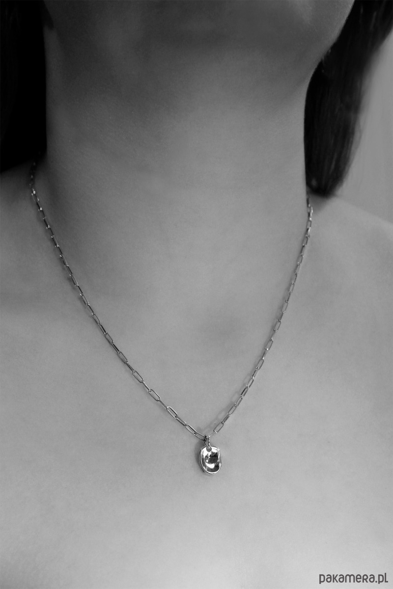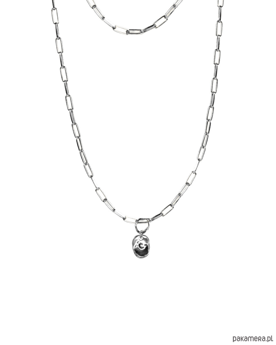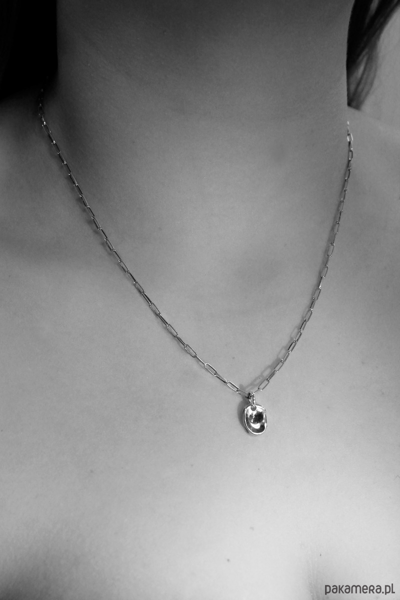 Prosty łańcuszek z z delikatną, nieregularną przywieszką stemp, która w niepowtarzalny sposób odbija światło. Możliwość zapięcia na dowolnej długości. Noś go solo lub w kaskadowych zestawach razem z innymi łańcuszkami czy naszyjnikami.