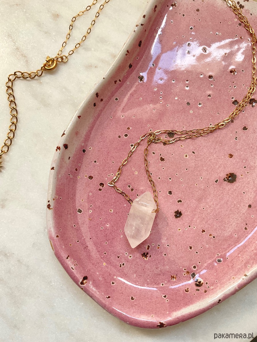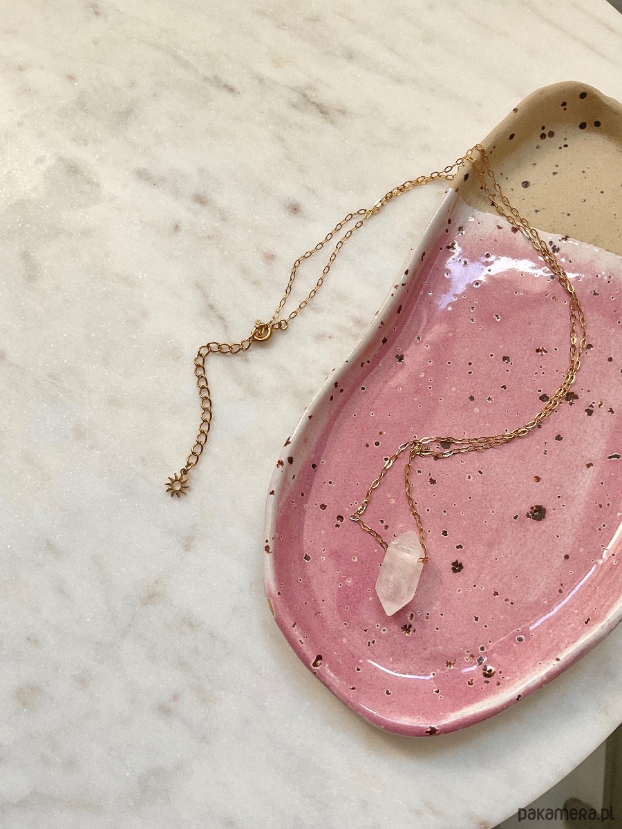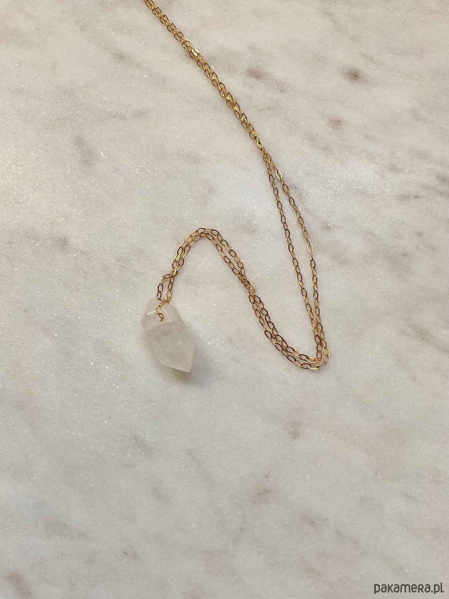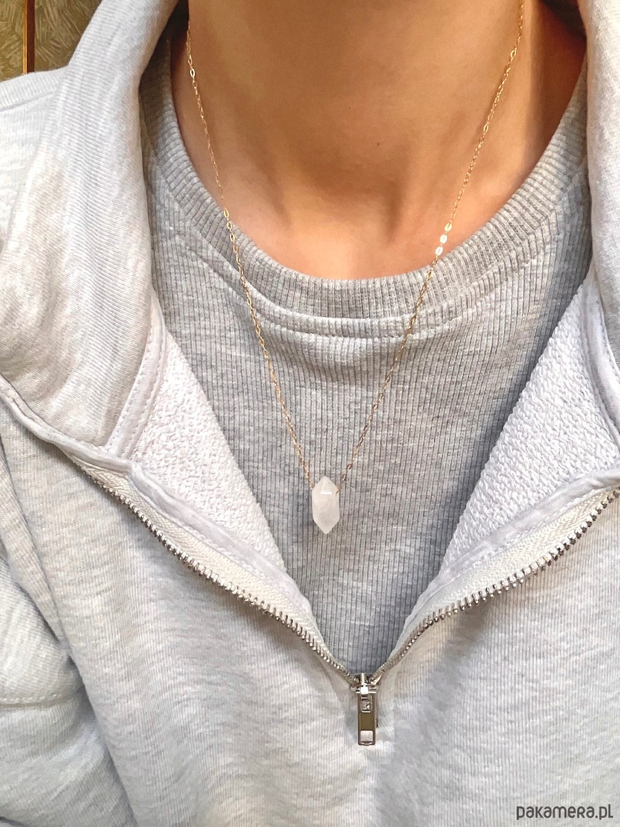 Złoty naszyjnik ze stali chirurgicznej o długości 50 cm z soplem z kryształu górskiego.