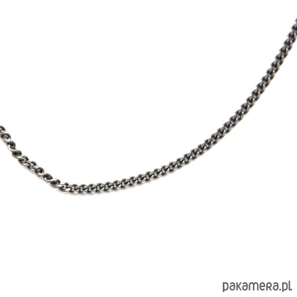 Łańcuszek ogniwkowy srebrny wykończony oksydą czarną.
