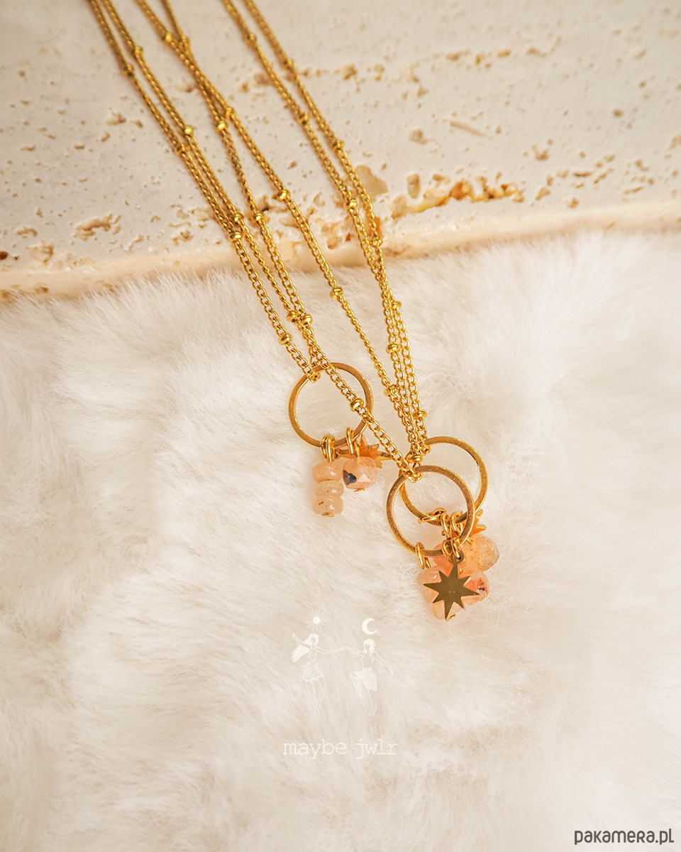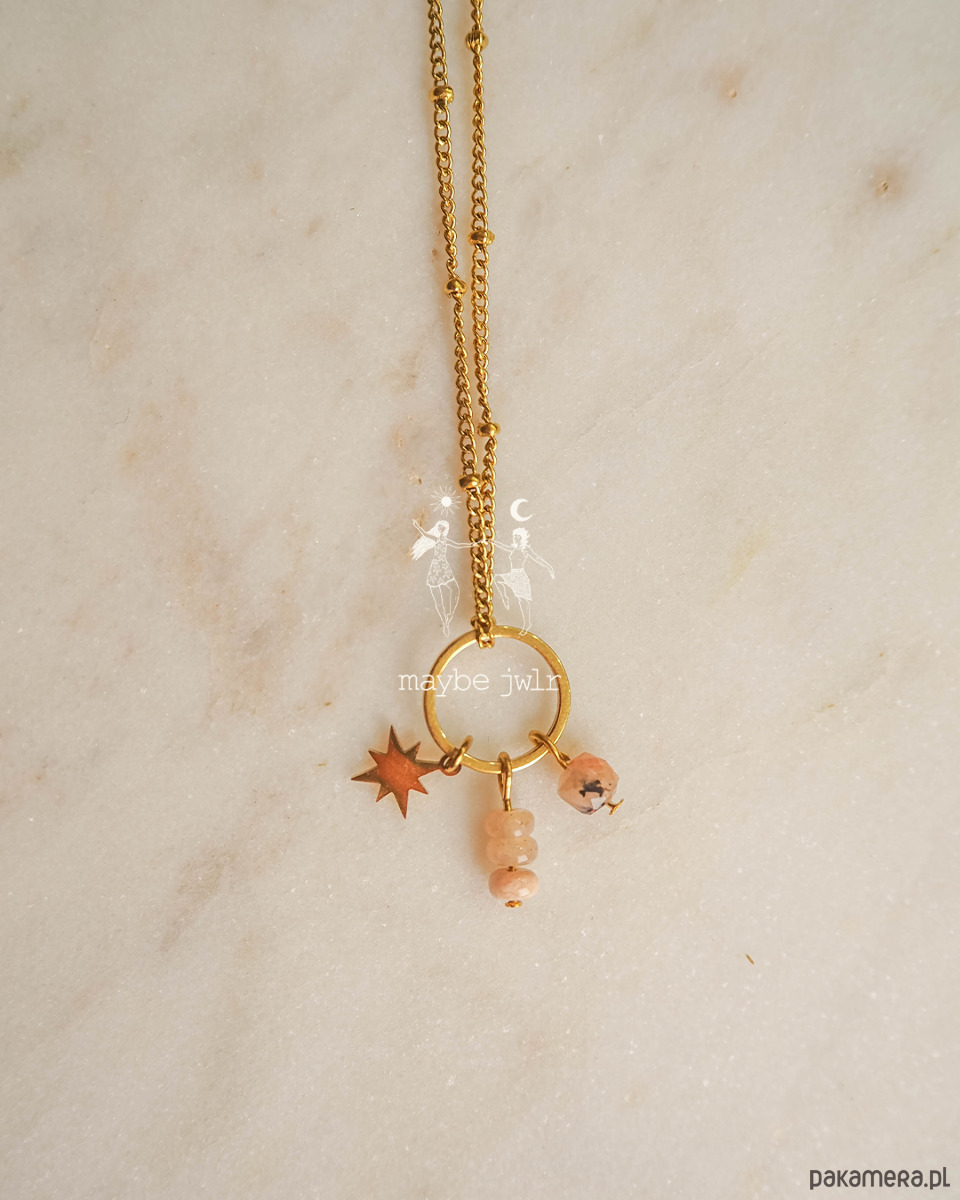 Elegancki i stonowany naszyjnik z zawieszkami z intencją Radość i Optymizm.