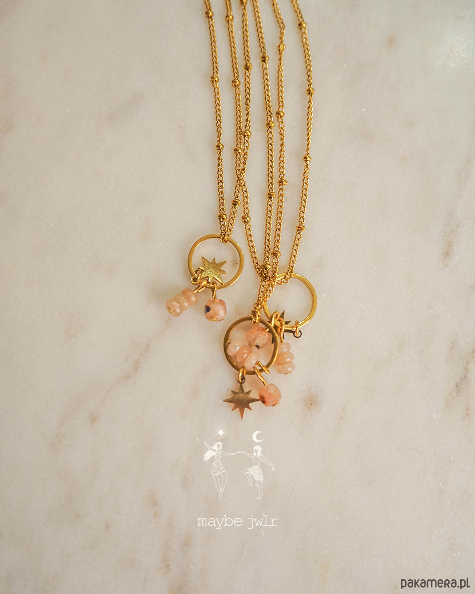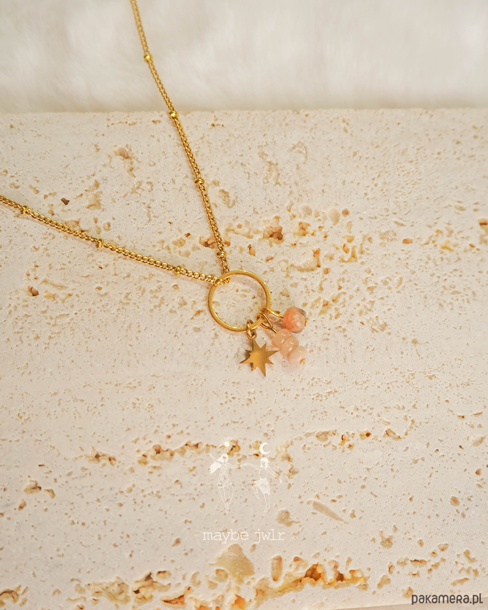 Na kółeczku są zawieszone 3 drobne, ręcznie zrobione zawieszki z kamieni naturalnych kamień słoneczny.