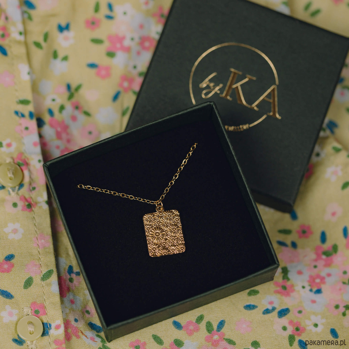 Łańcuszek z pozłacanej, antyalergicznej stali chirurgicznej z zawieszką o kwiatowym wzorze.