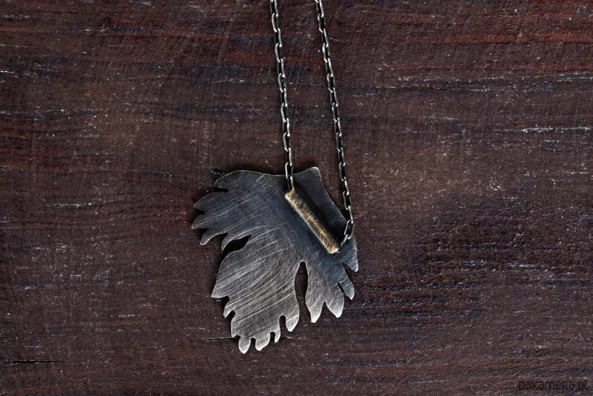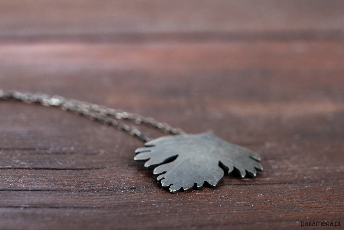 Wielkość liścia ok. 2 cm, długość łańcuszka 45 cm.