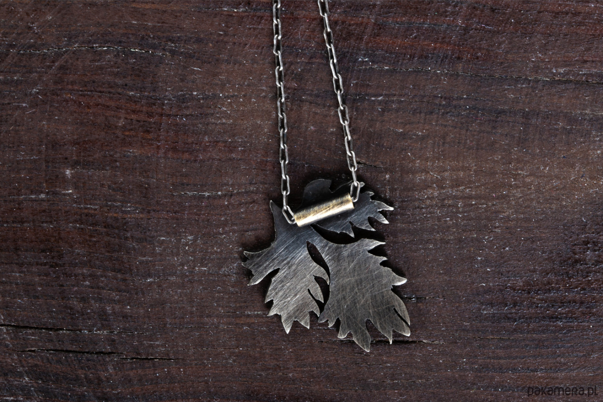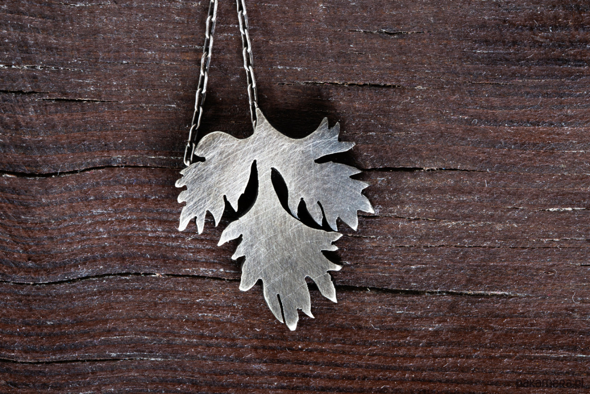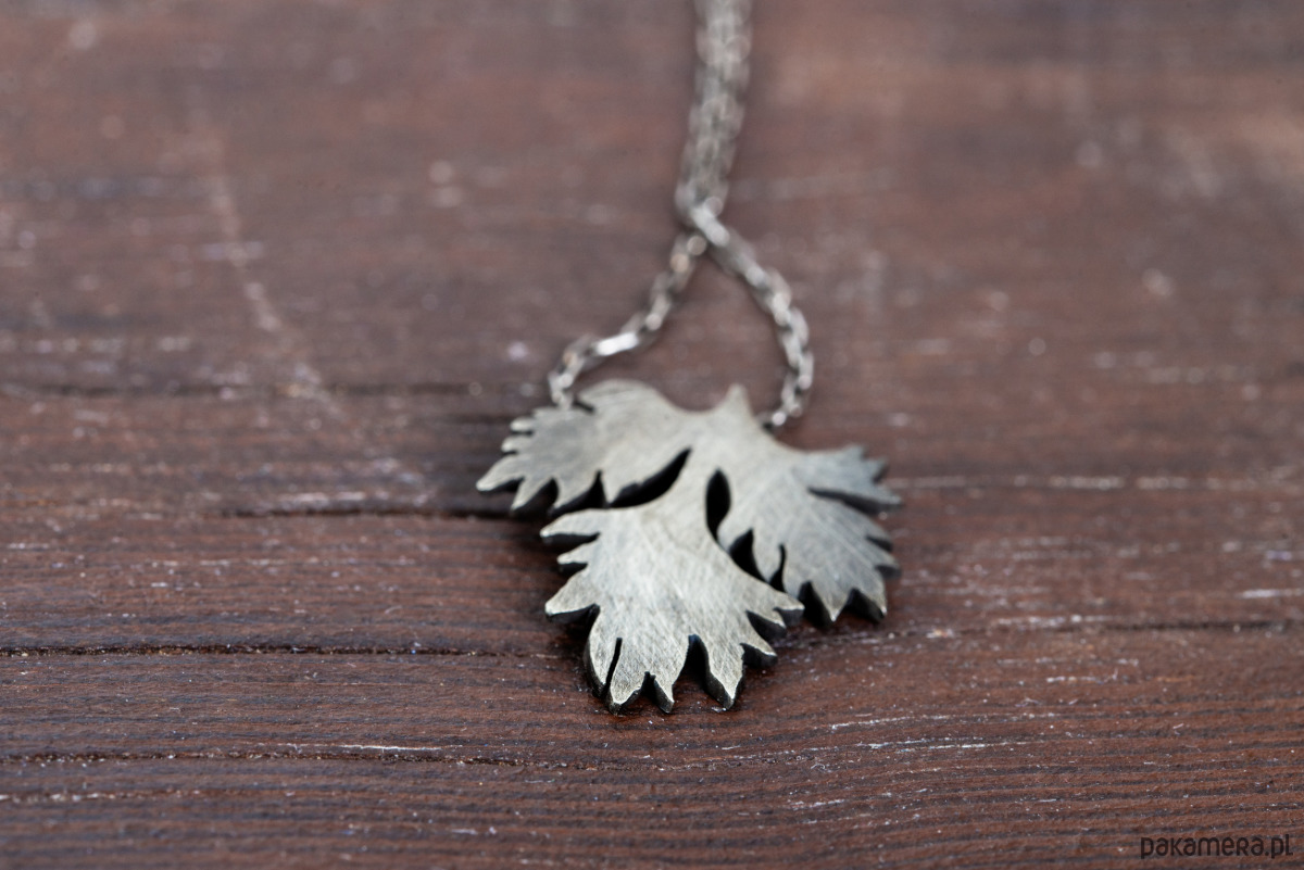 Wielkość liścia ok. 2 cm, długość łańcuszka 45 cm.