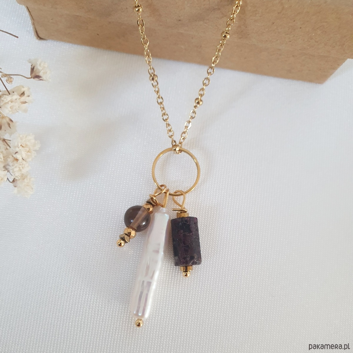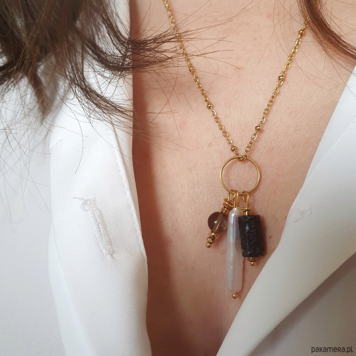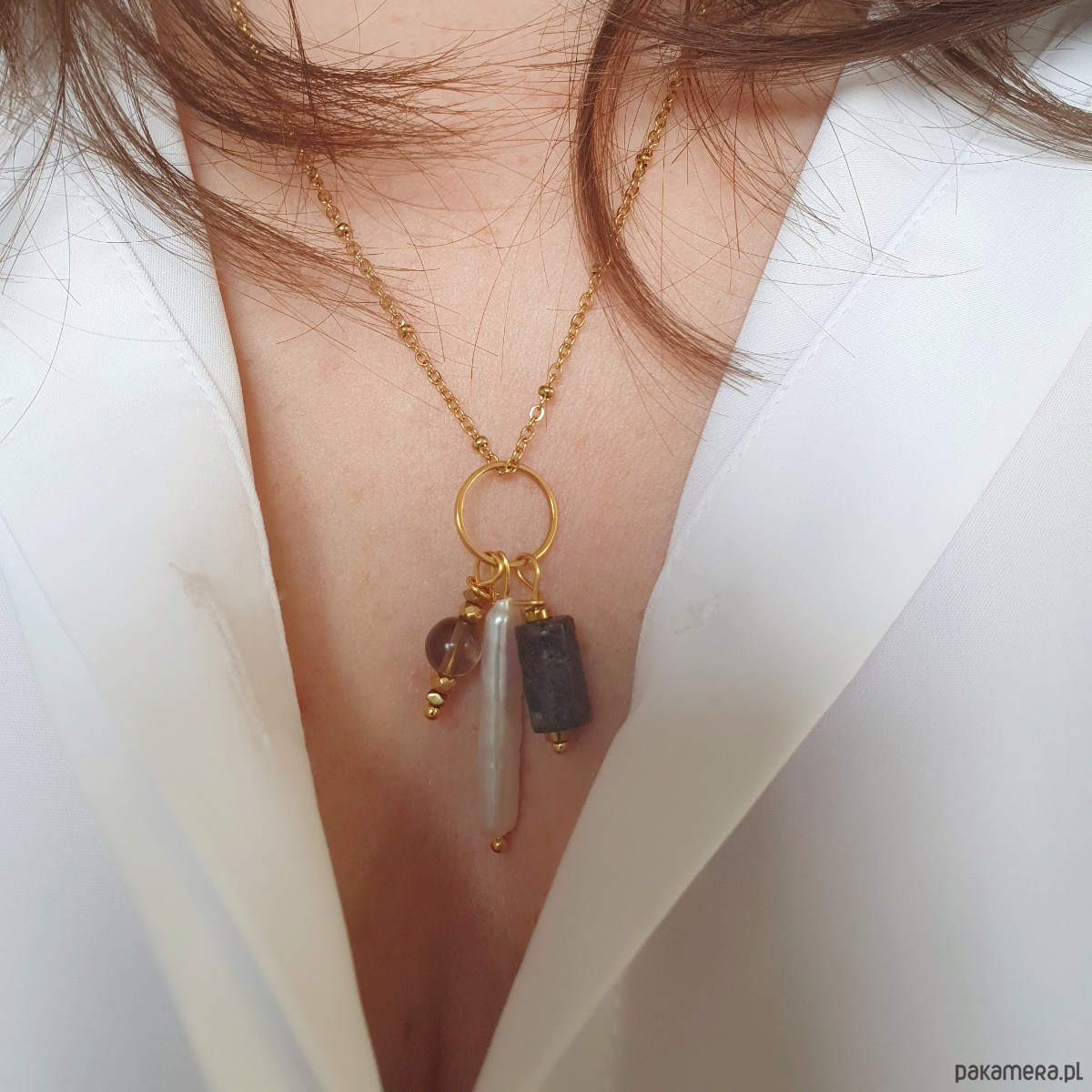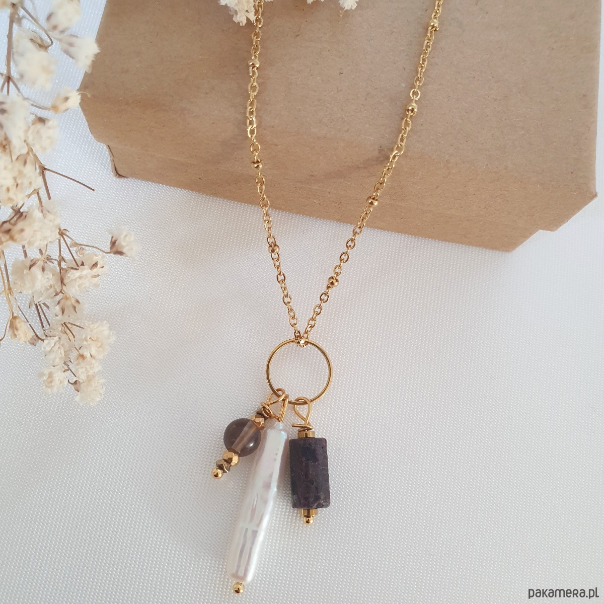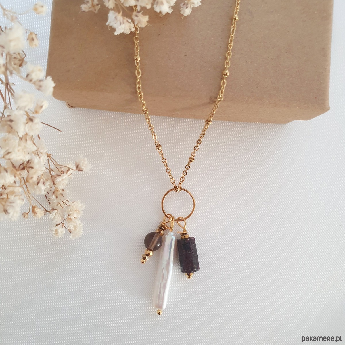 Łańcuszek ze stali szlachetnej w kolorze złotym, z zawieszką z trzema kamieniami naturalnymi: