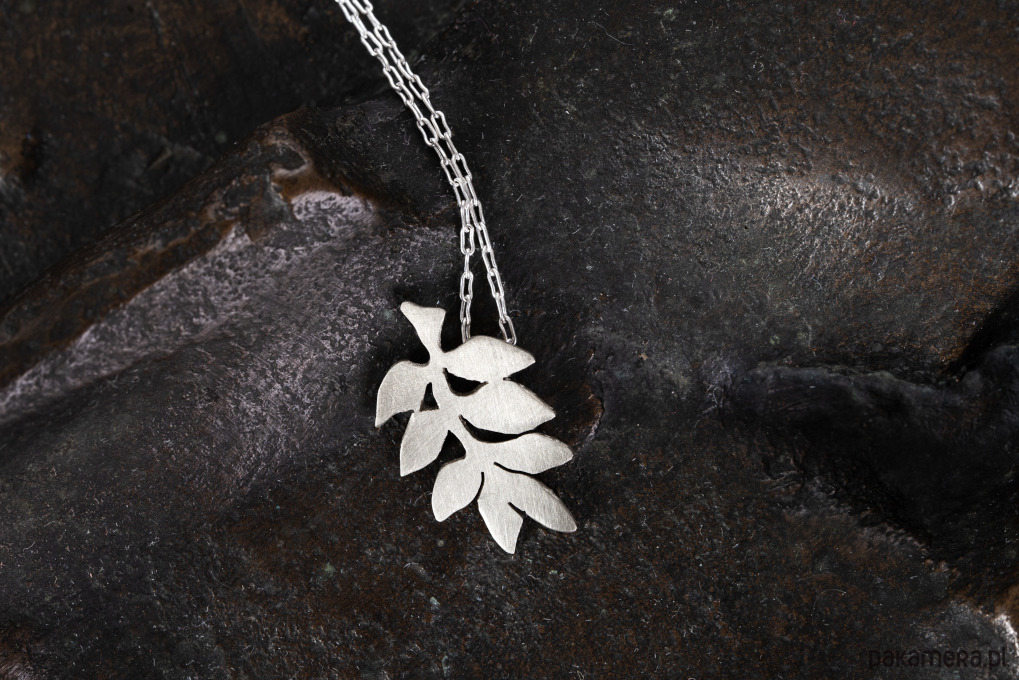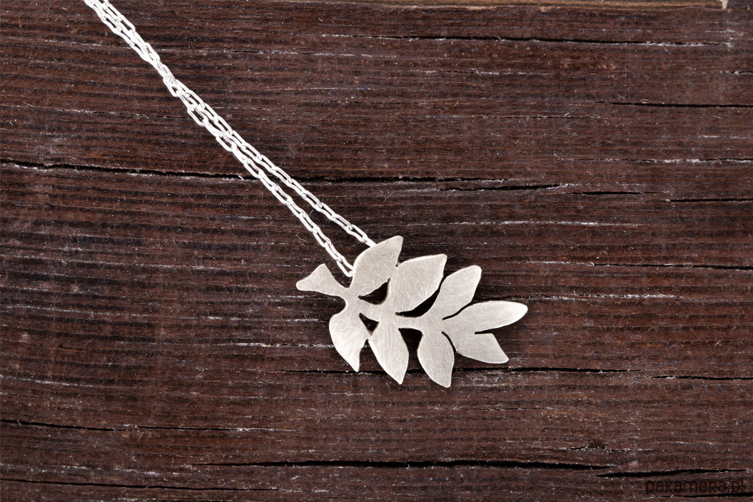 Wielkość liścia ok. 3 cm, długość łańcuszka 45 cm.