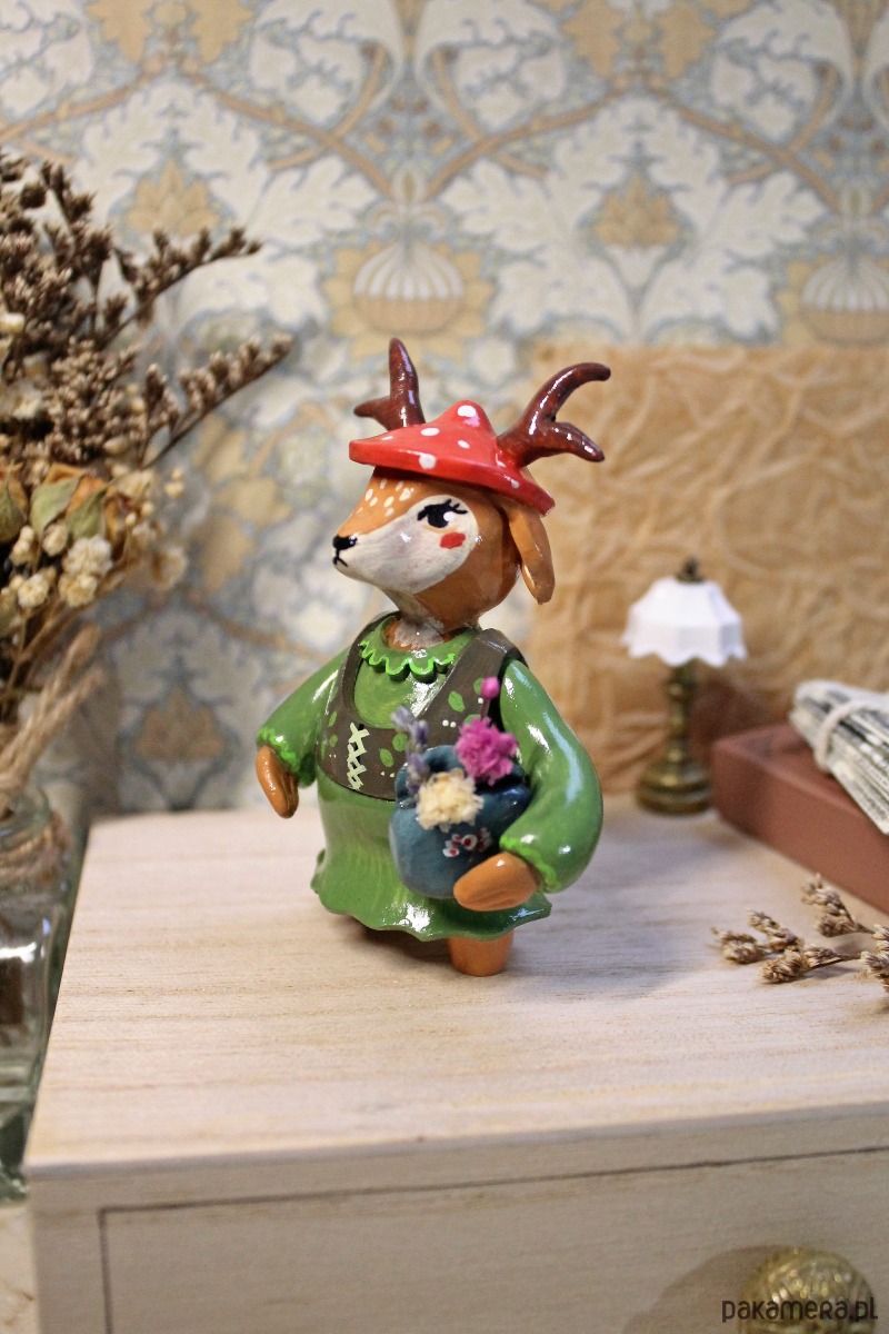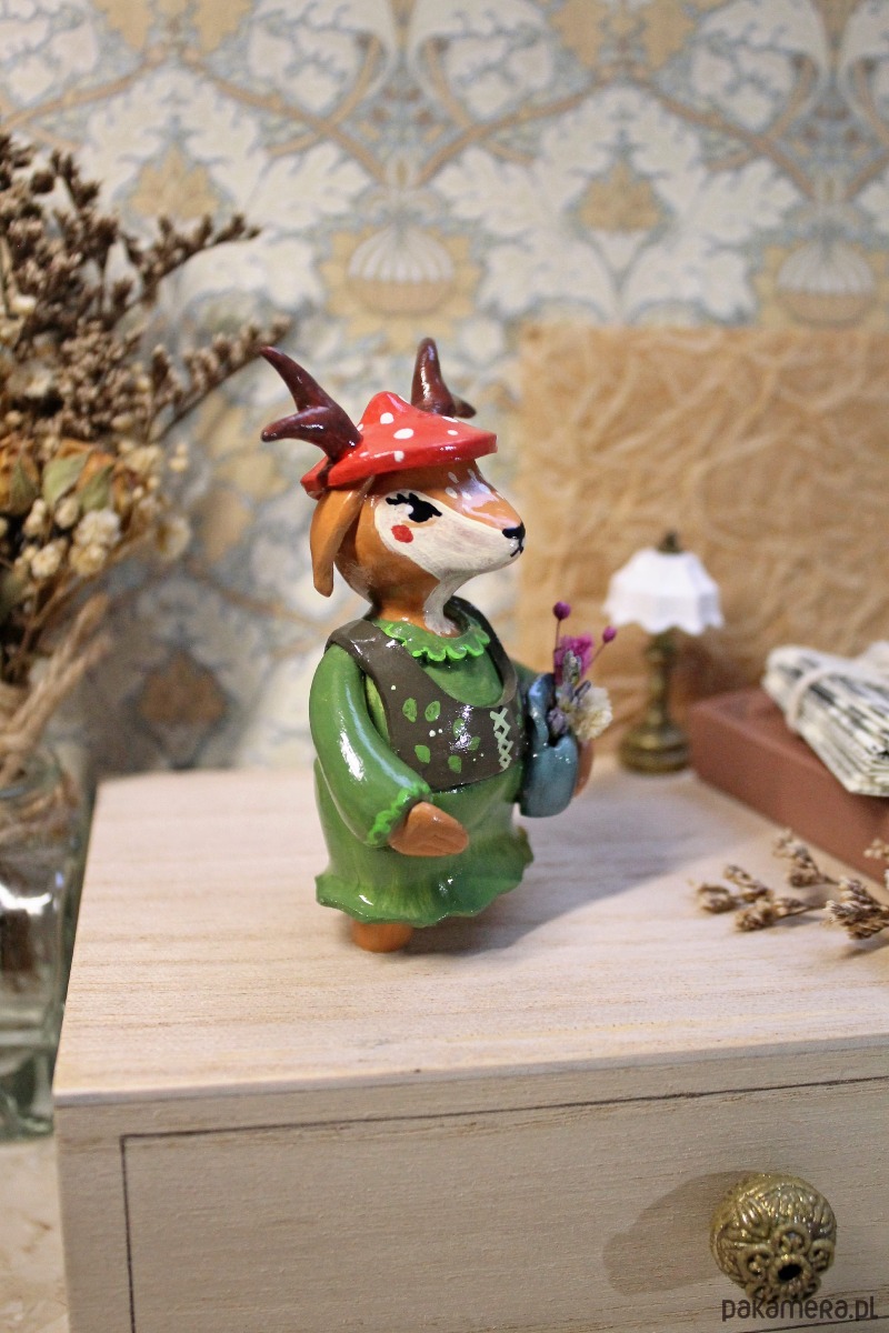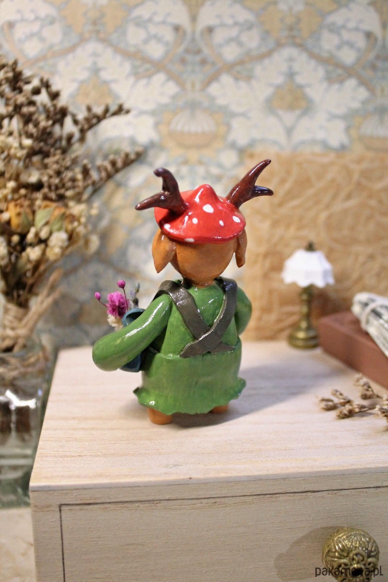 Ta figurka została wykonana ręcznie z gliny polimerowej wysokiej jakości. Każdy detal powstał z miłością i dbałością o najmniejsze szczegóły, co nadaje jej wyjątkowy charakter. Figurkę pomalowano ręcznie farbami akrylowymi i pokryto lakierem ochronnym.