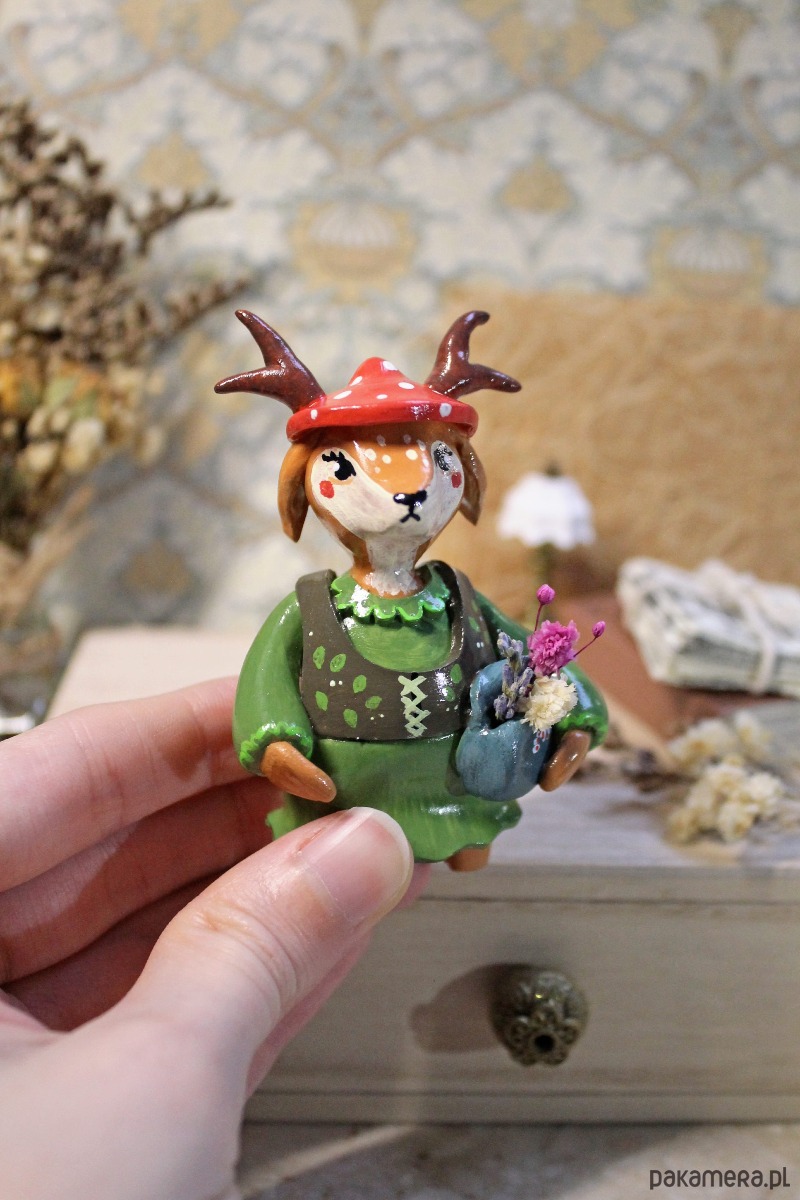 Ta figurka została wykonana ręcznie z gliny polimerowej wysokiej jakości. Każdy detal powstał z miłością i dbałością o najmniejsze szczegóły, co nadaje jej wyjątkowy charakter. Figurkę pomalowano ręcznie farbami akrylowymi i pokryto lakierem ochronnym.