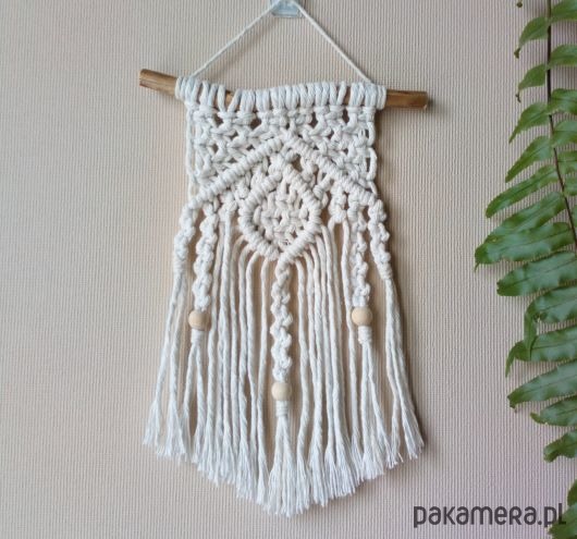 W prezencie dokładam makramę XS, zawieszona na naturalnym patyczku, oczyszczonym i polakierowanym. Szerokość 16,5 cm, długość 28,5 cm.