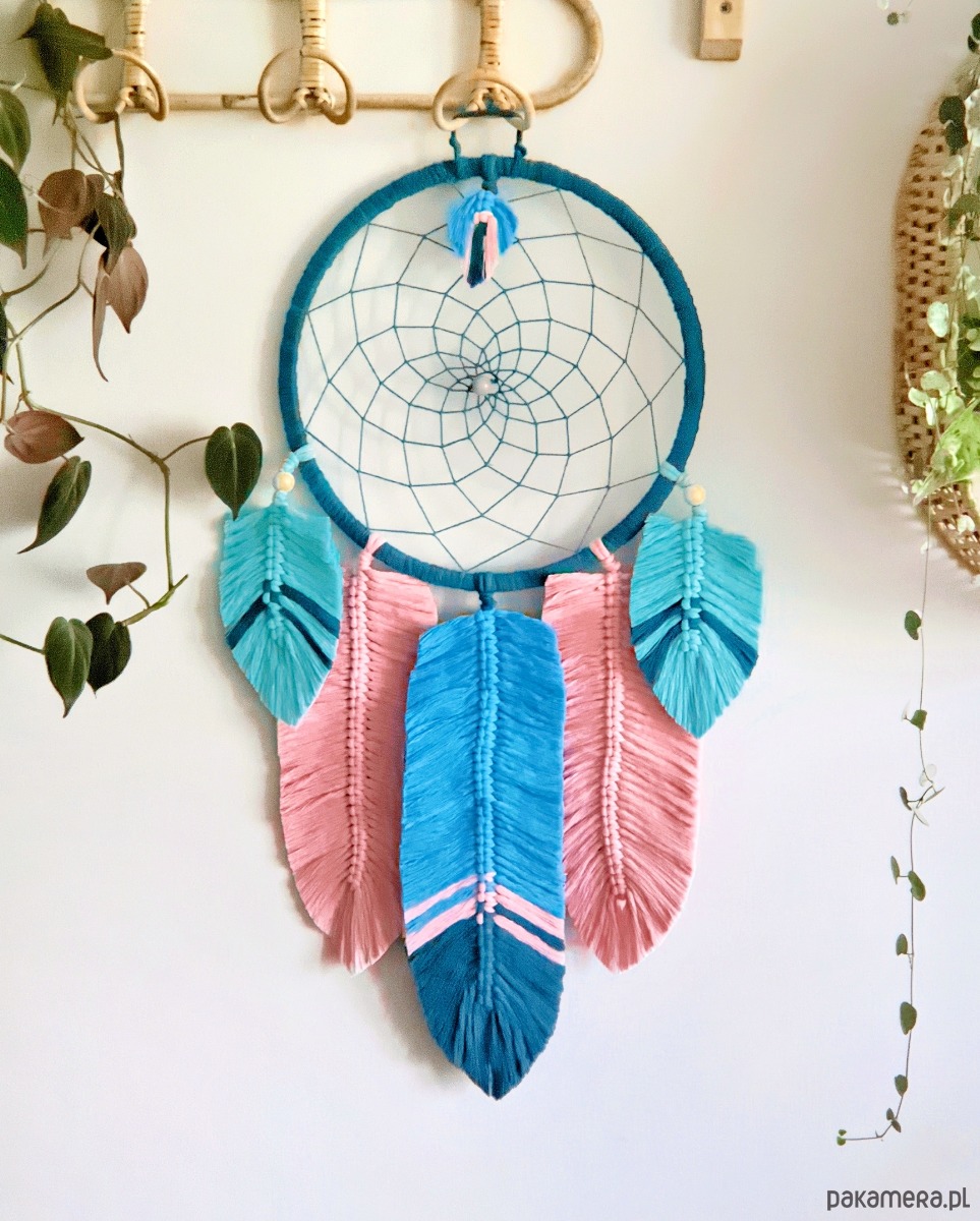 Łapacz snów, kolorowe piórka makrama 65cm, kolorowe dekoracje dla dzieci